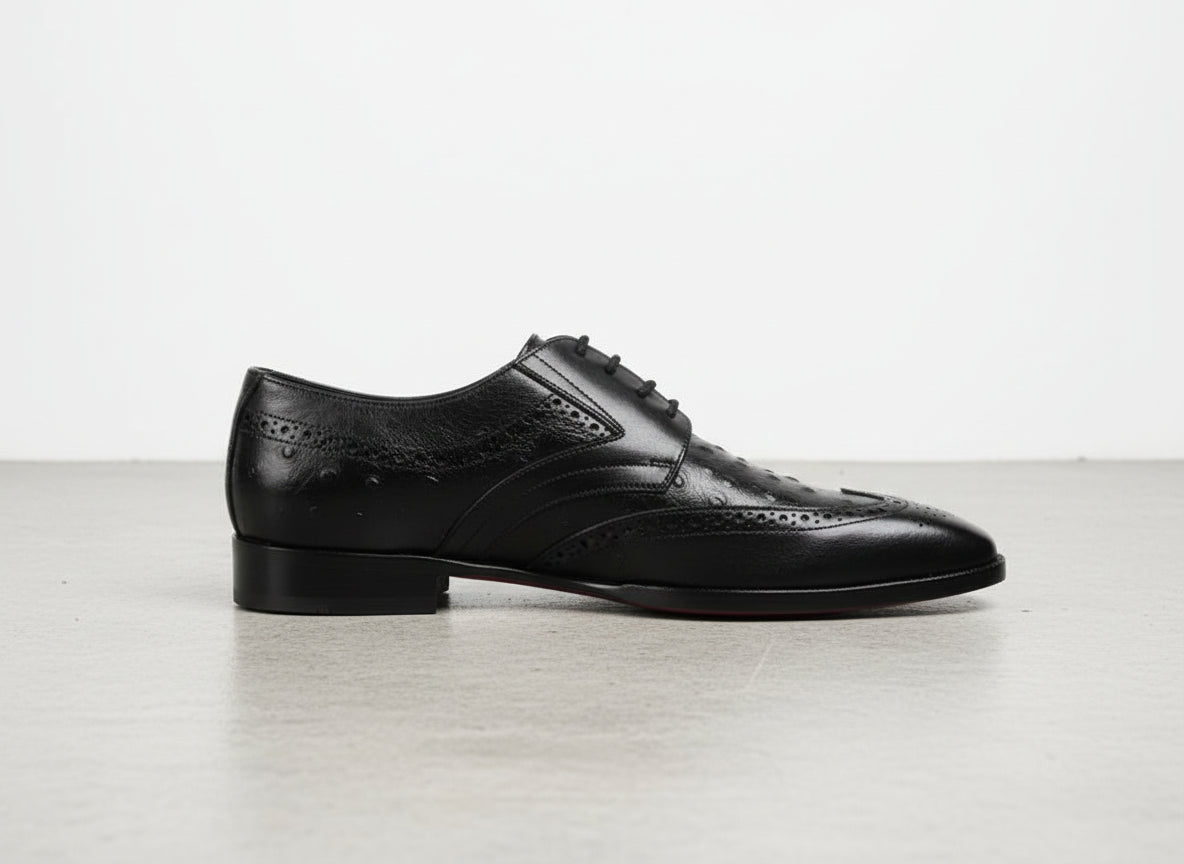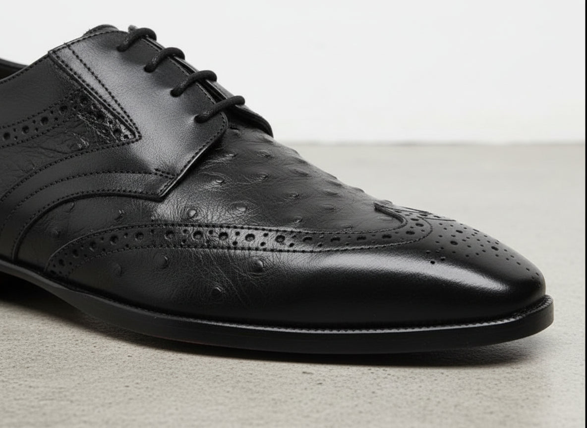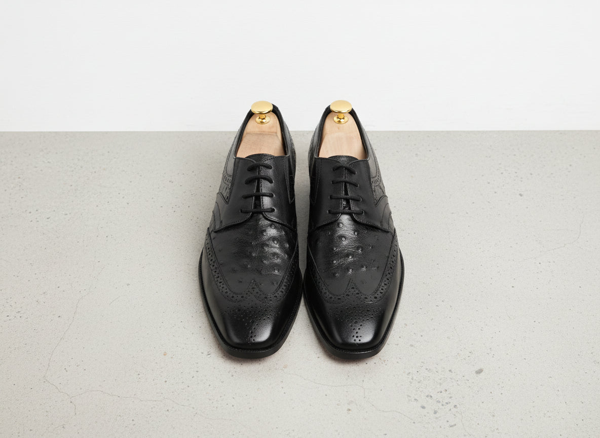 Handcrafted Men's Black Ostrich Leather Wingtip Shoes
