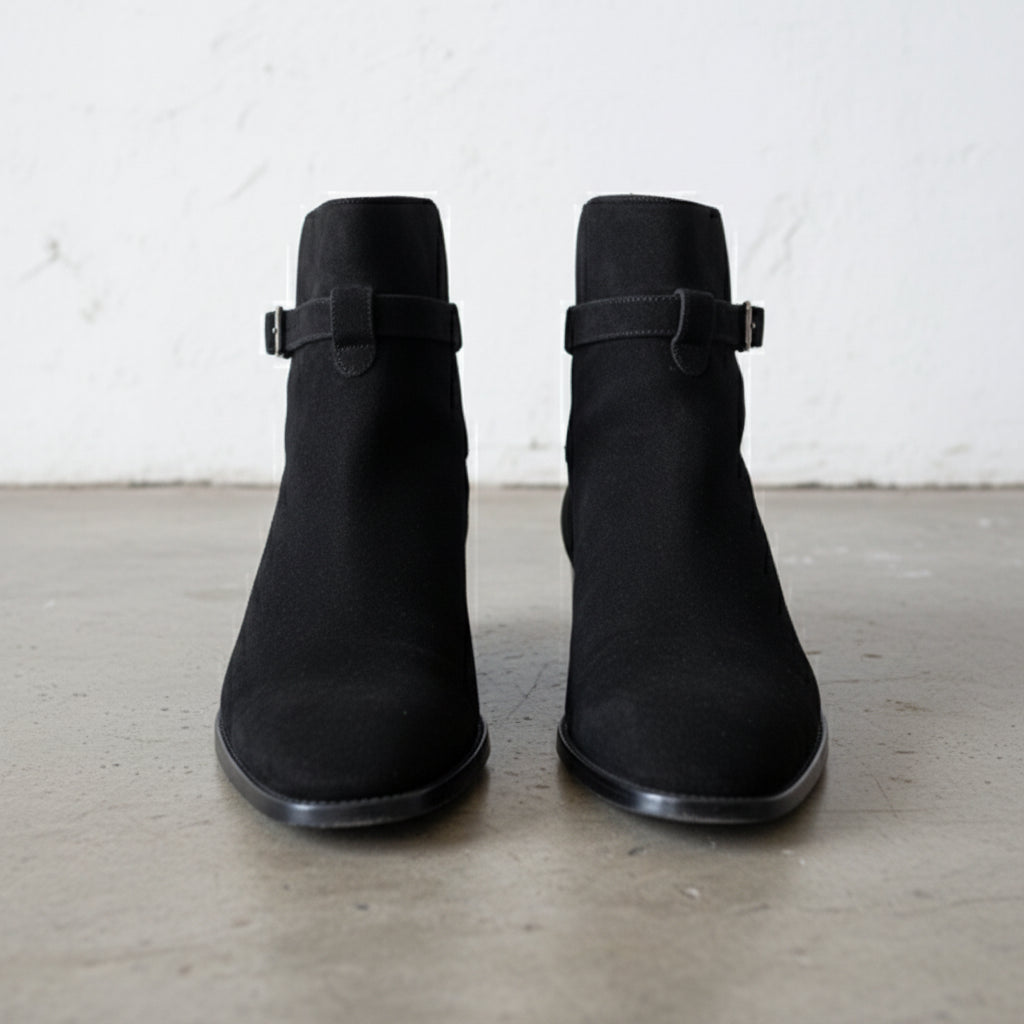 Handmade Mens Black Suede Leather Boots, Men Black Jodhpurs Leather Boot