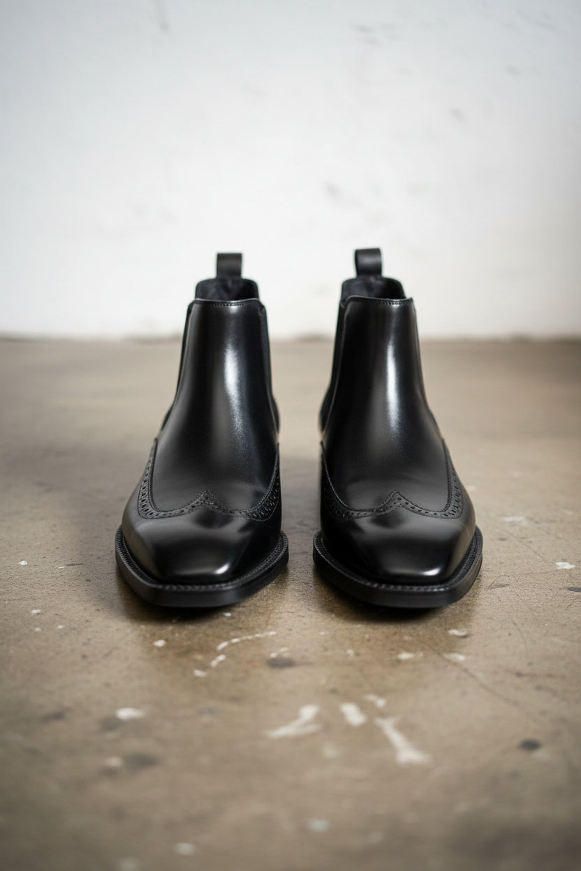 Handmade Black Wingtip Chelsea Boots - Men's Ankle Boots