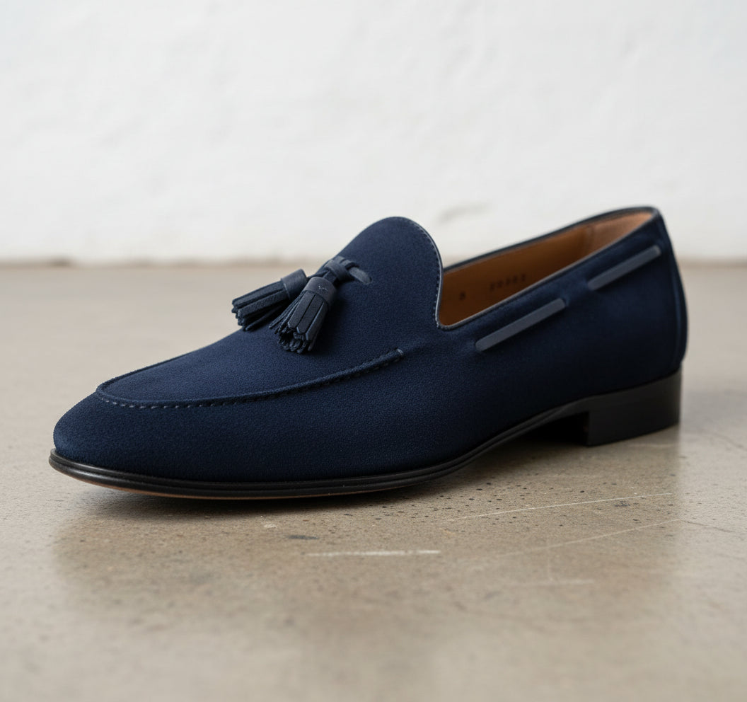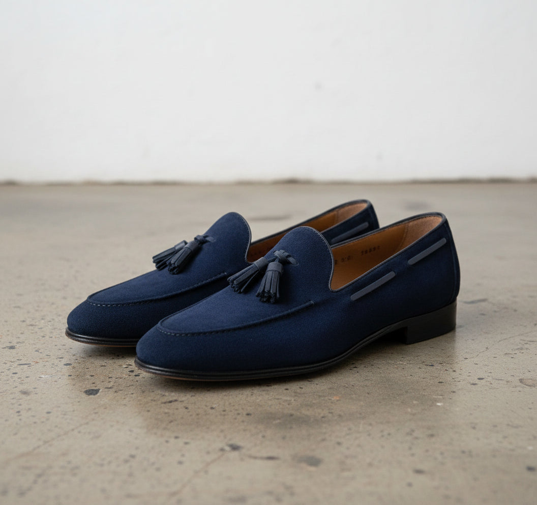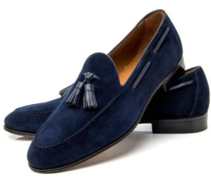 Handcrafted Men's Blue Suede Moccasin Loafers