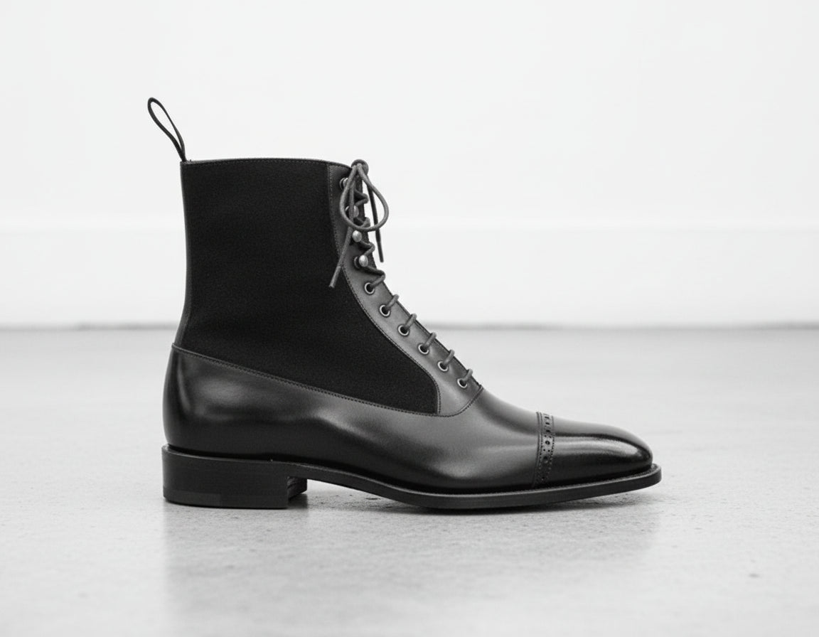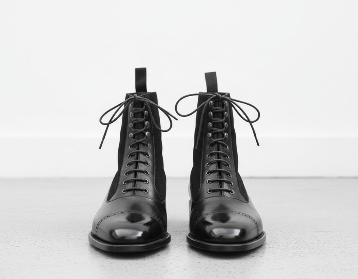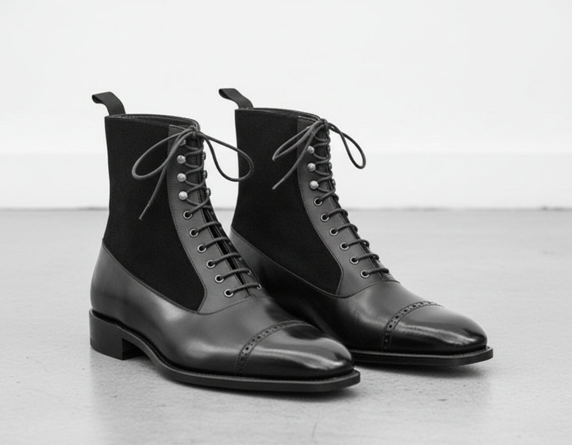 Handmade Mens Brogue Dress Boots, Men Lace Up Leather Suede Ankle Boots