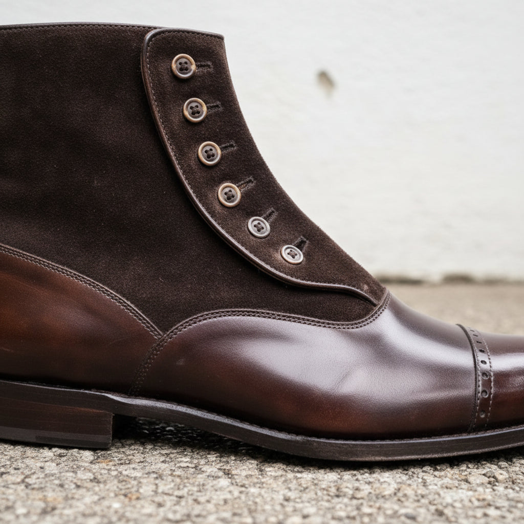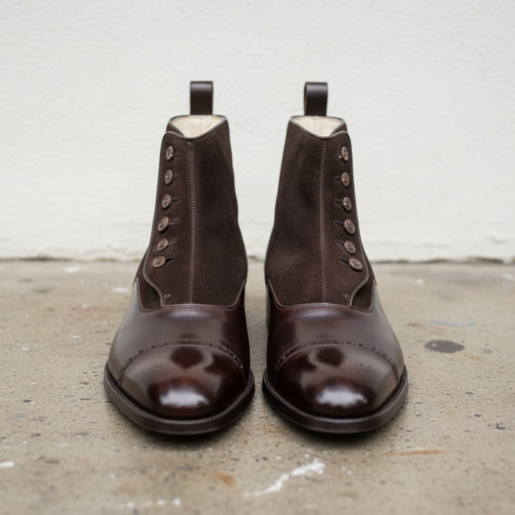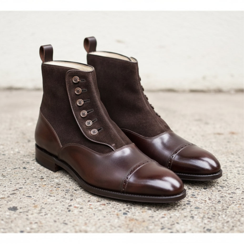 Handmade Mens Brown Button Boots, Men Gentlemen Ankle Boots, Leather Boot