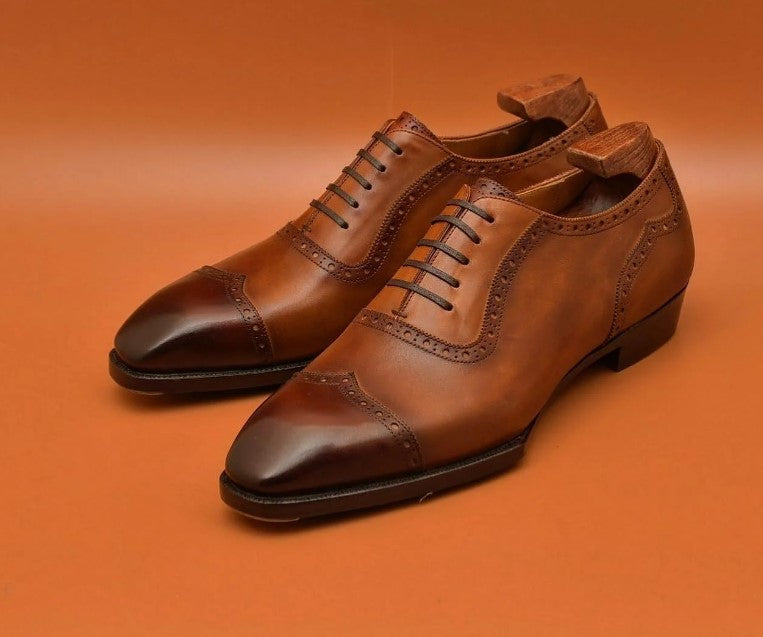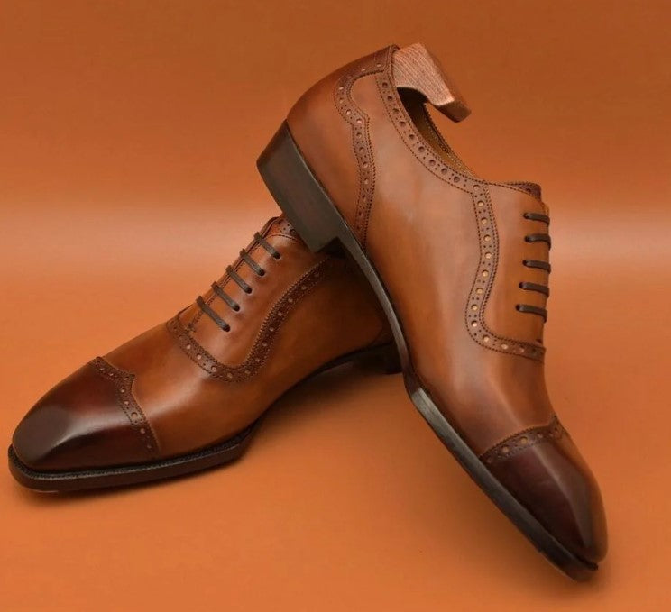 Handmade Mens Brown Wingtip Brogue Dress Shoes, Men Classic Style Ahoes