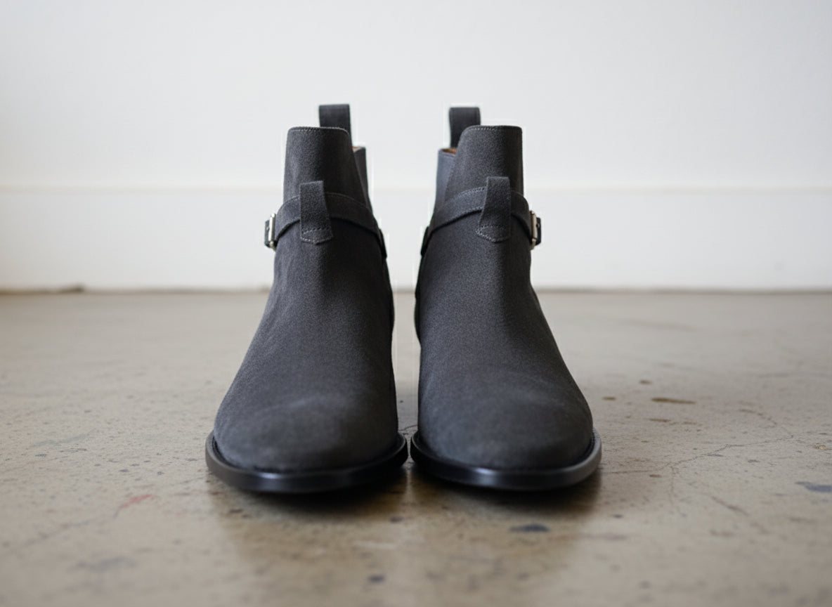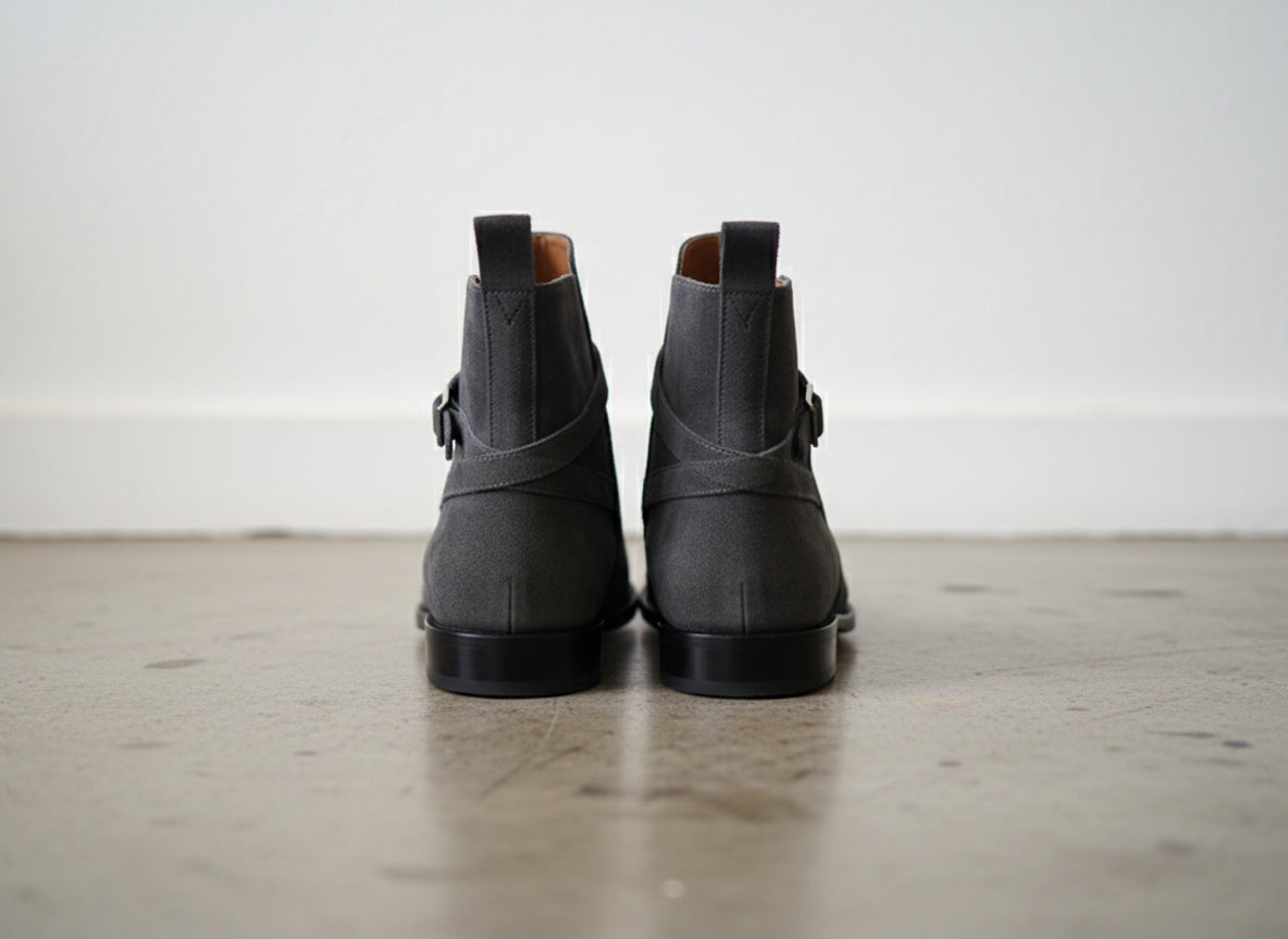 Handmade Mens Dark Gray Suede Jodhpurs Boot, Men Gray Ankle Suede Boots
