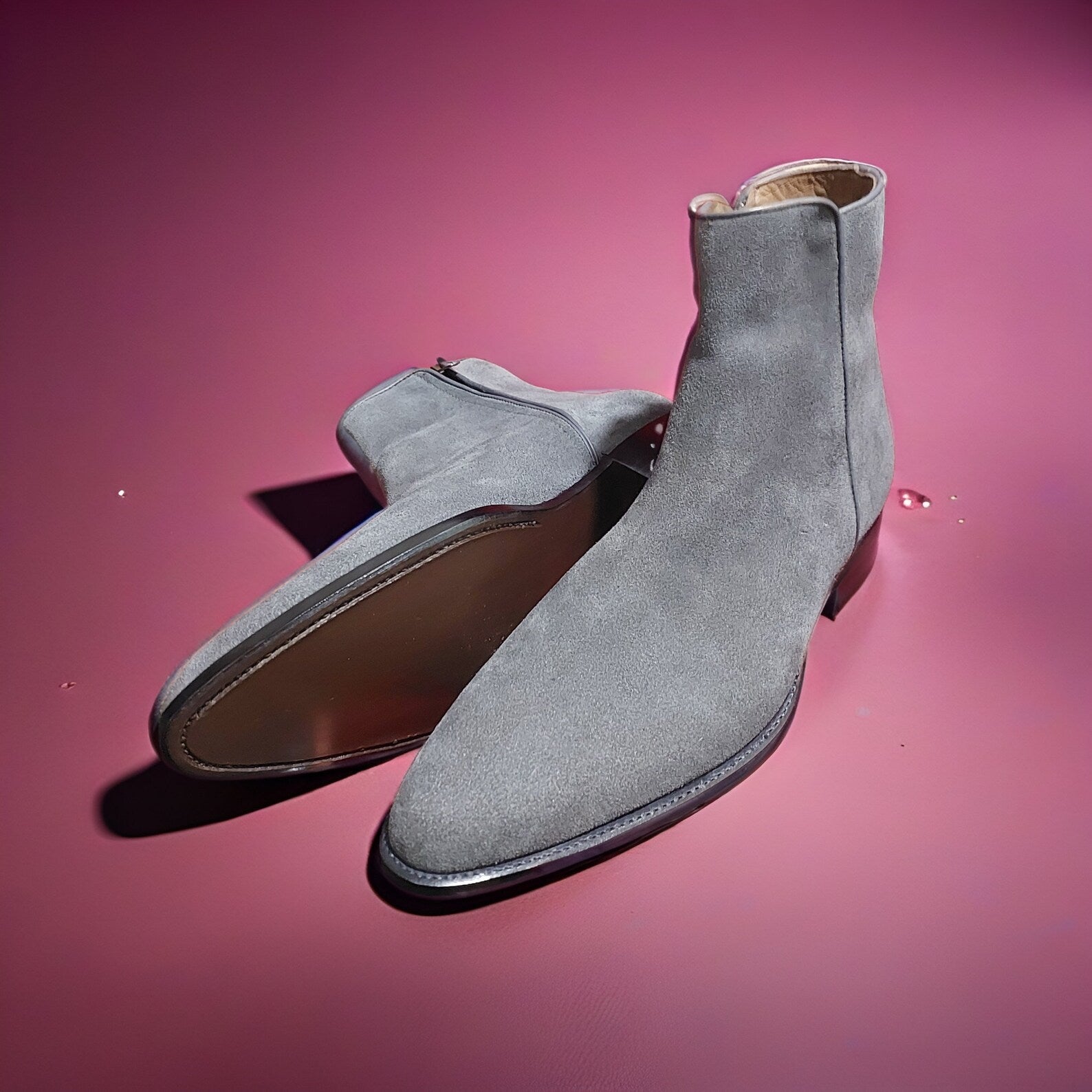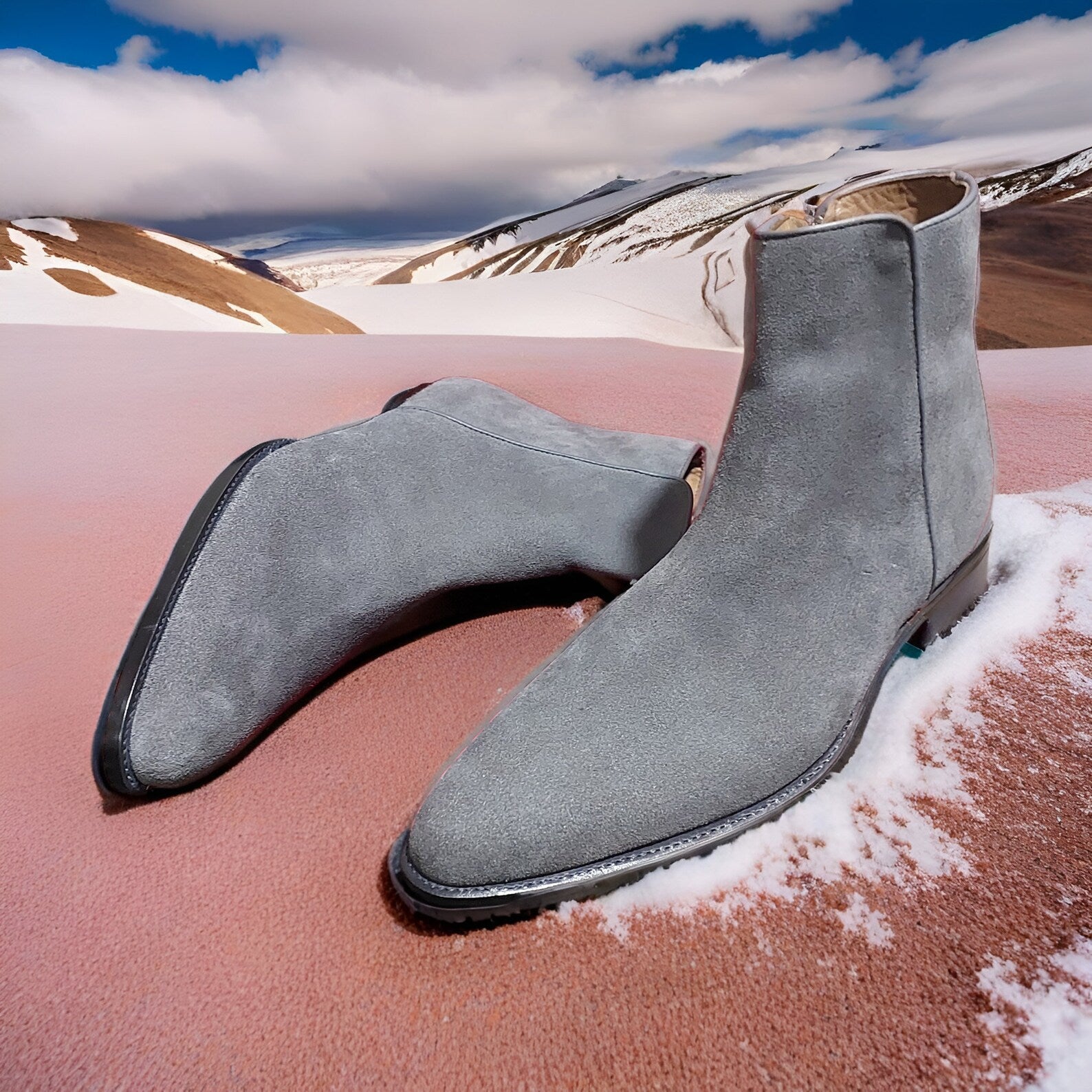 Handmade Mens Gray Suede Ankle Boots, Men Dress Boot, Gray Zipper Boot