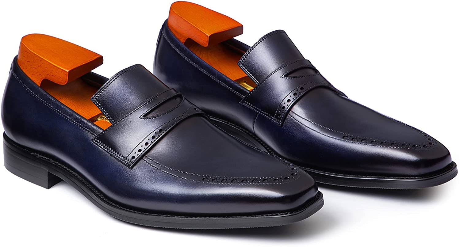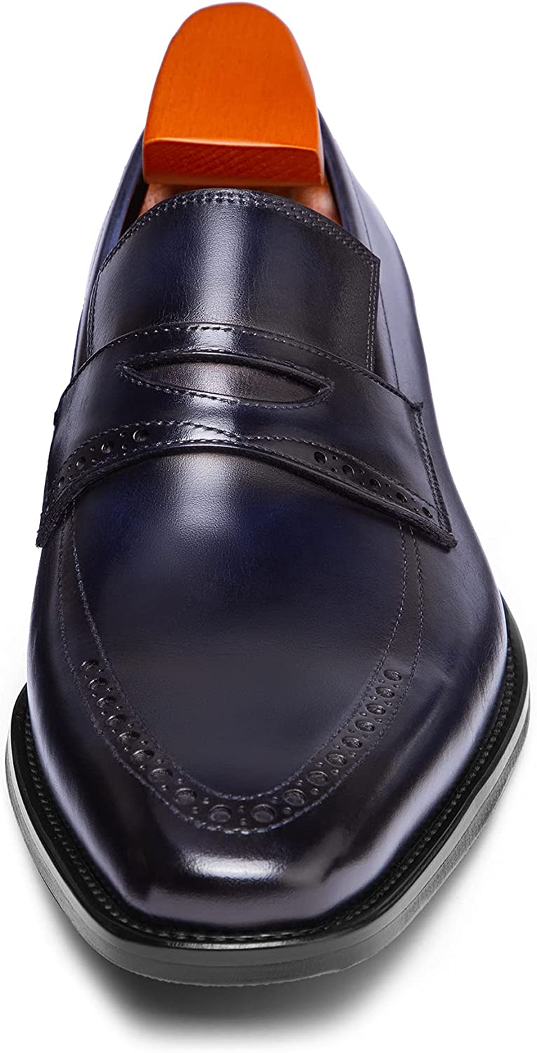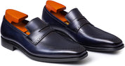 Handcrafted Men's Navy Blue Leather Moccasins