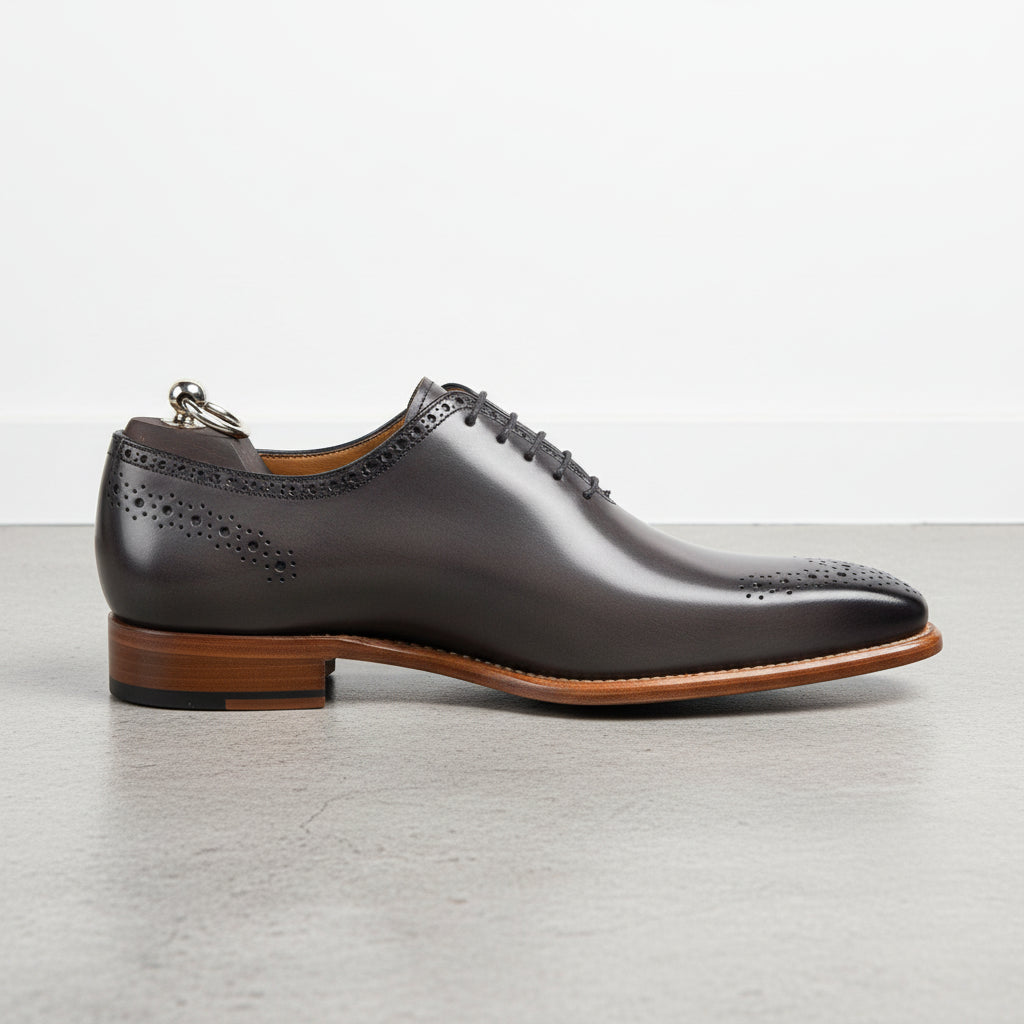 Men's Gray Leather Oxford Brogue Dress Shoes