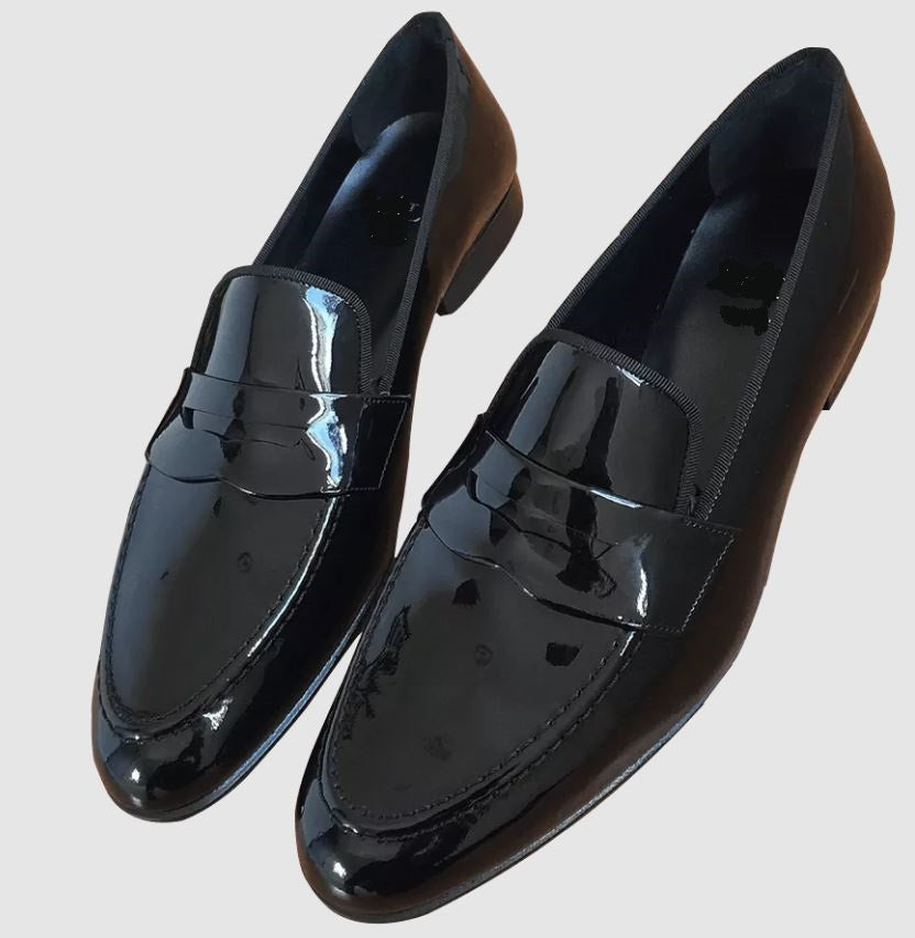 Handmade Mens Patent Leather Shoes, Men Black Formal Shoes Moccasins Loafer