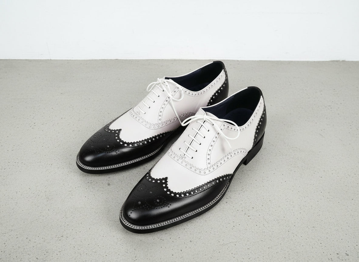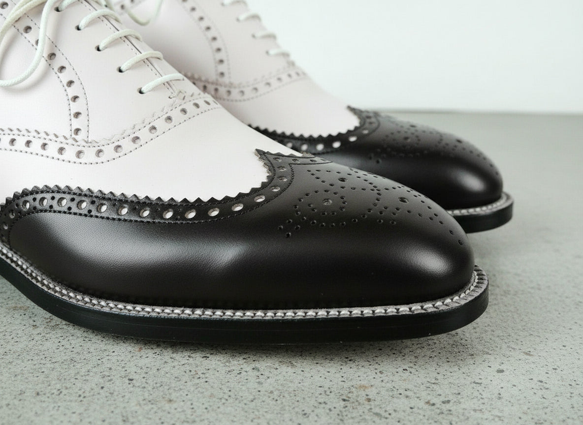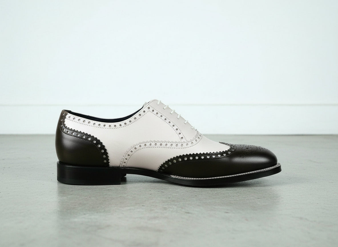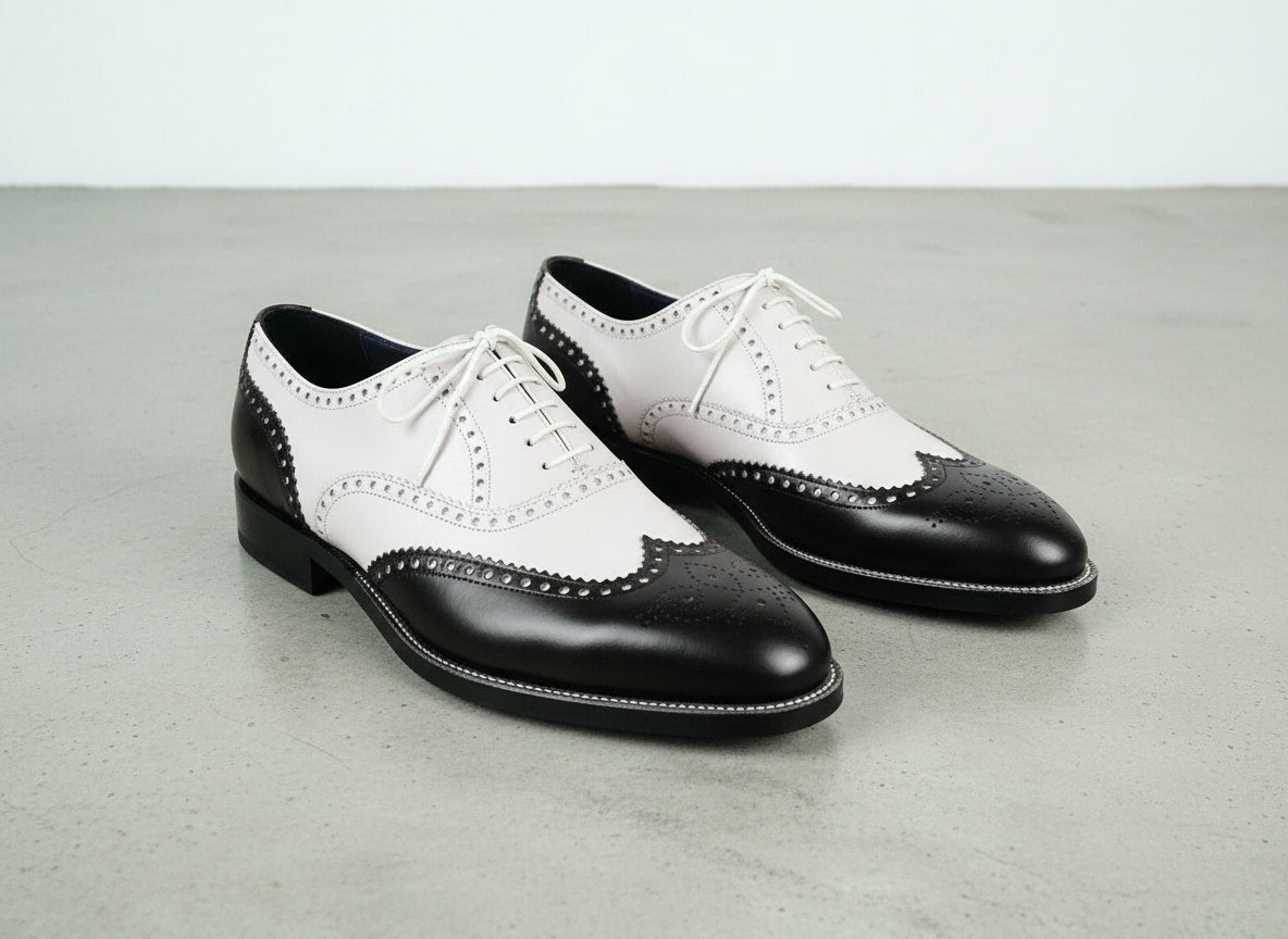 Handmade Mens Spectator Two tone Wing tip brogue Dress shoes, shoes for men