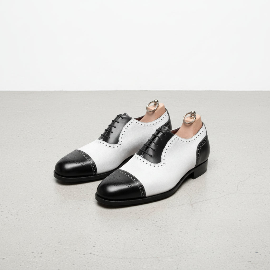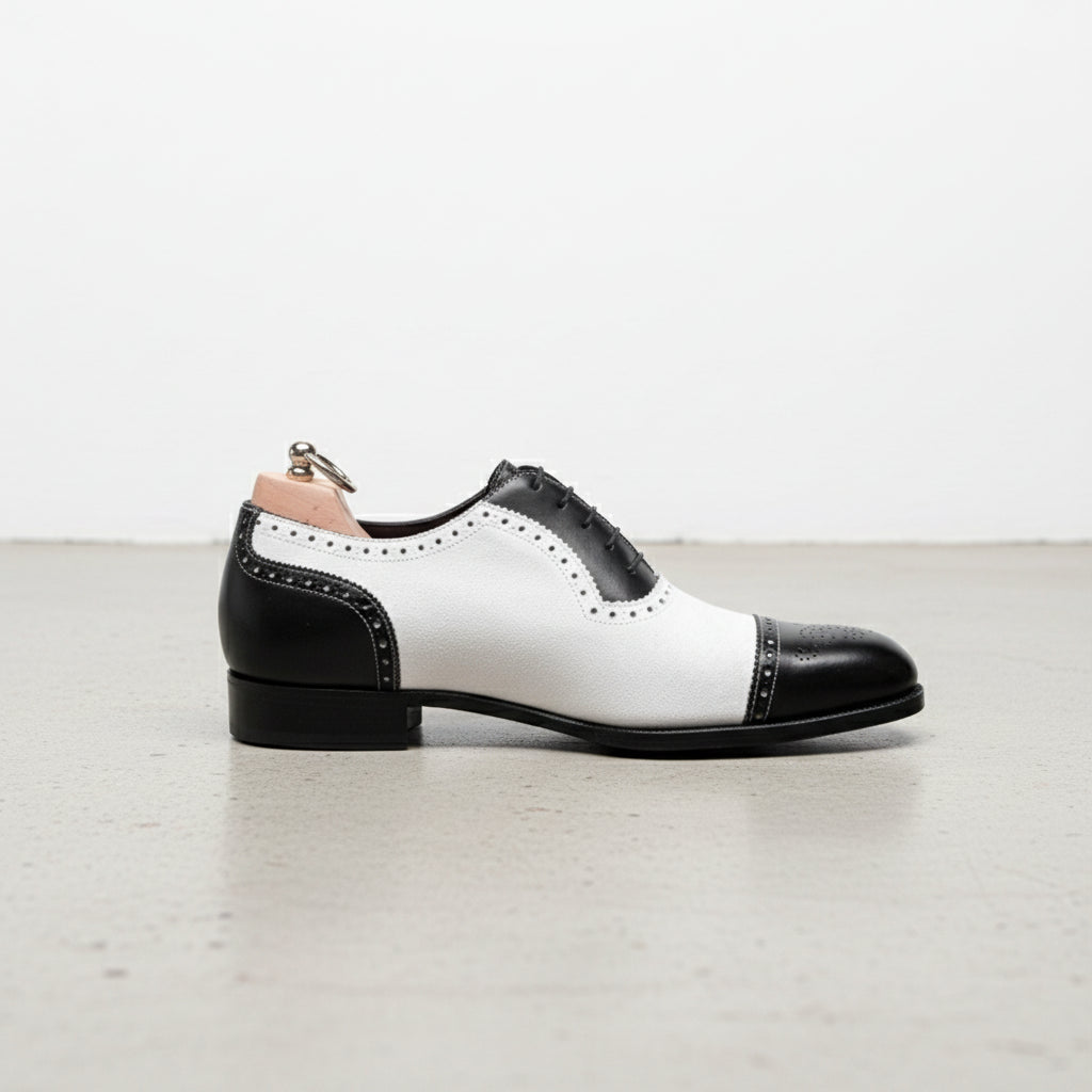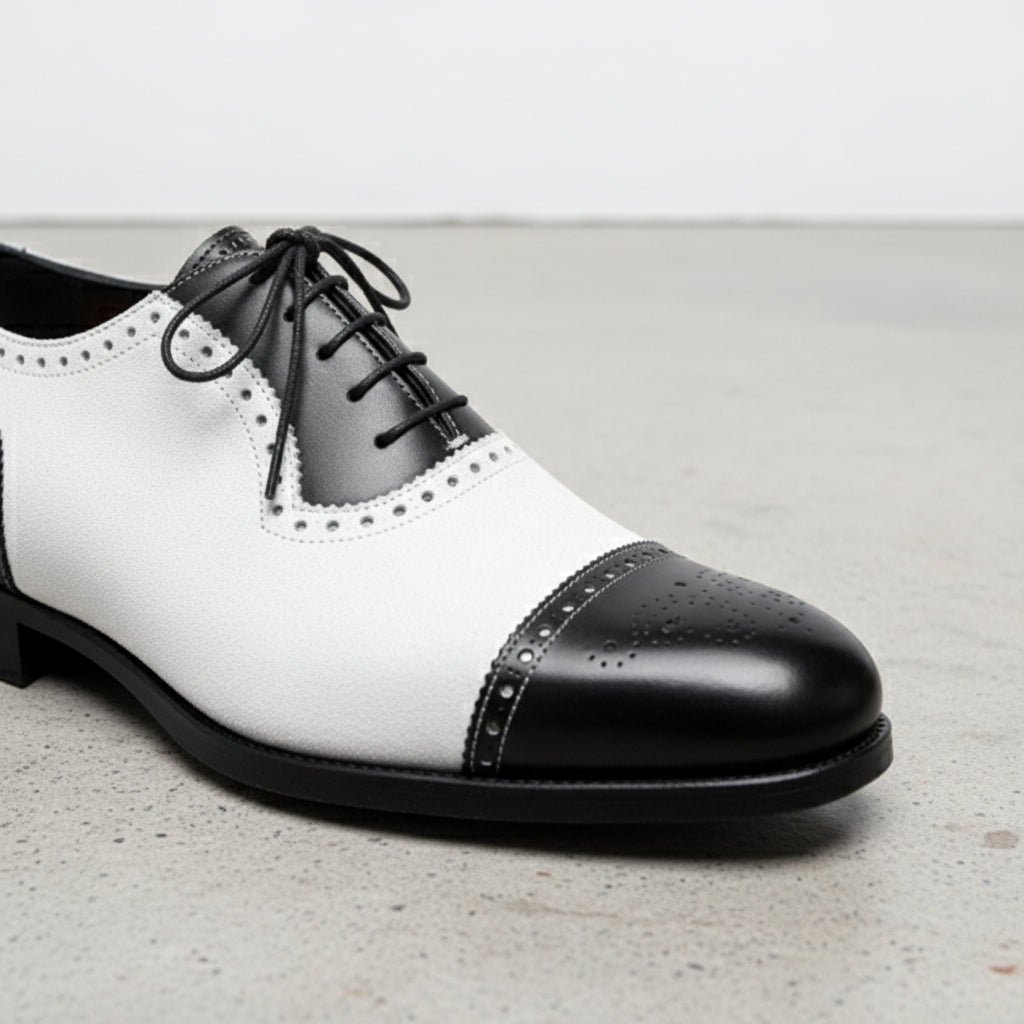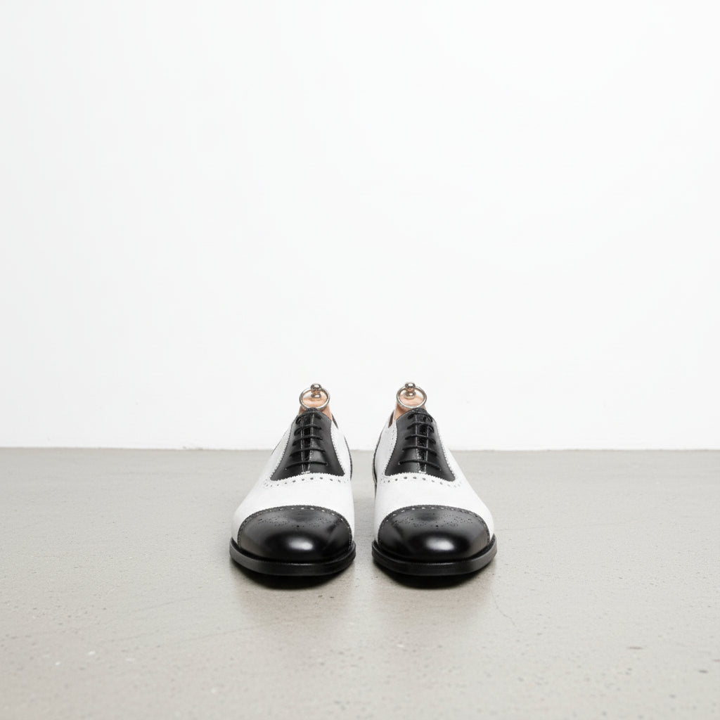 Handmade Mens Two Tone Formal Shoes, Me Black and White Spectator Shoes