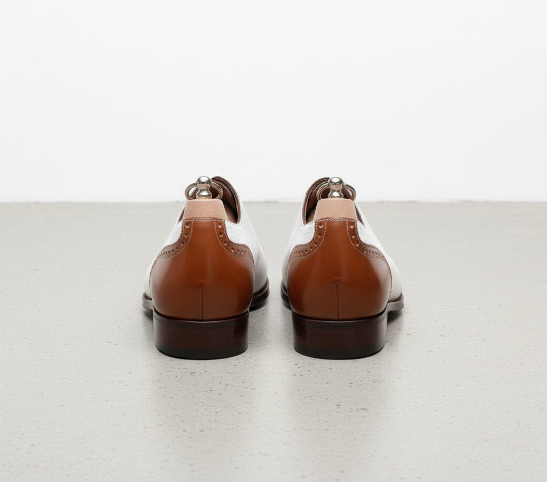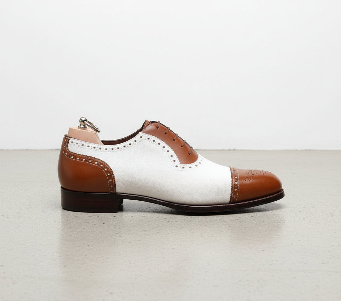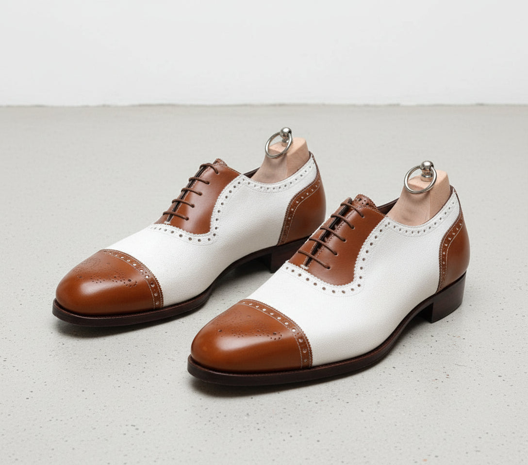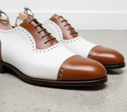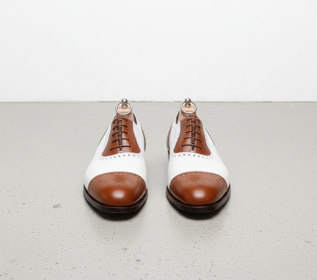 Handmade Mens Two Tone Formal Shoes, Me Brown and White Spectator Shoes