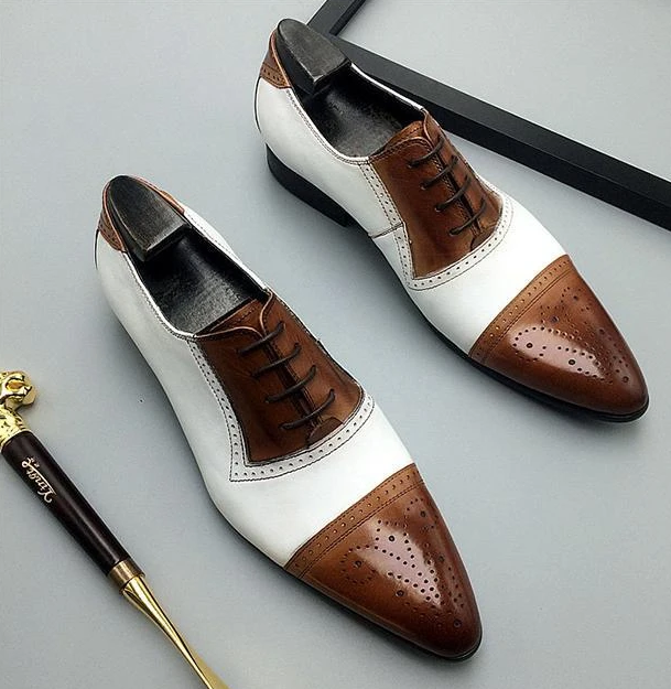 Handmade Mens Two Tone Formal Shoes, Men Spectator Shoes, Pointed Toe Shoes