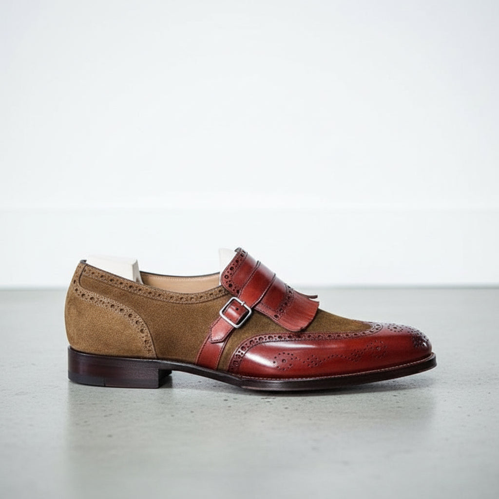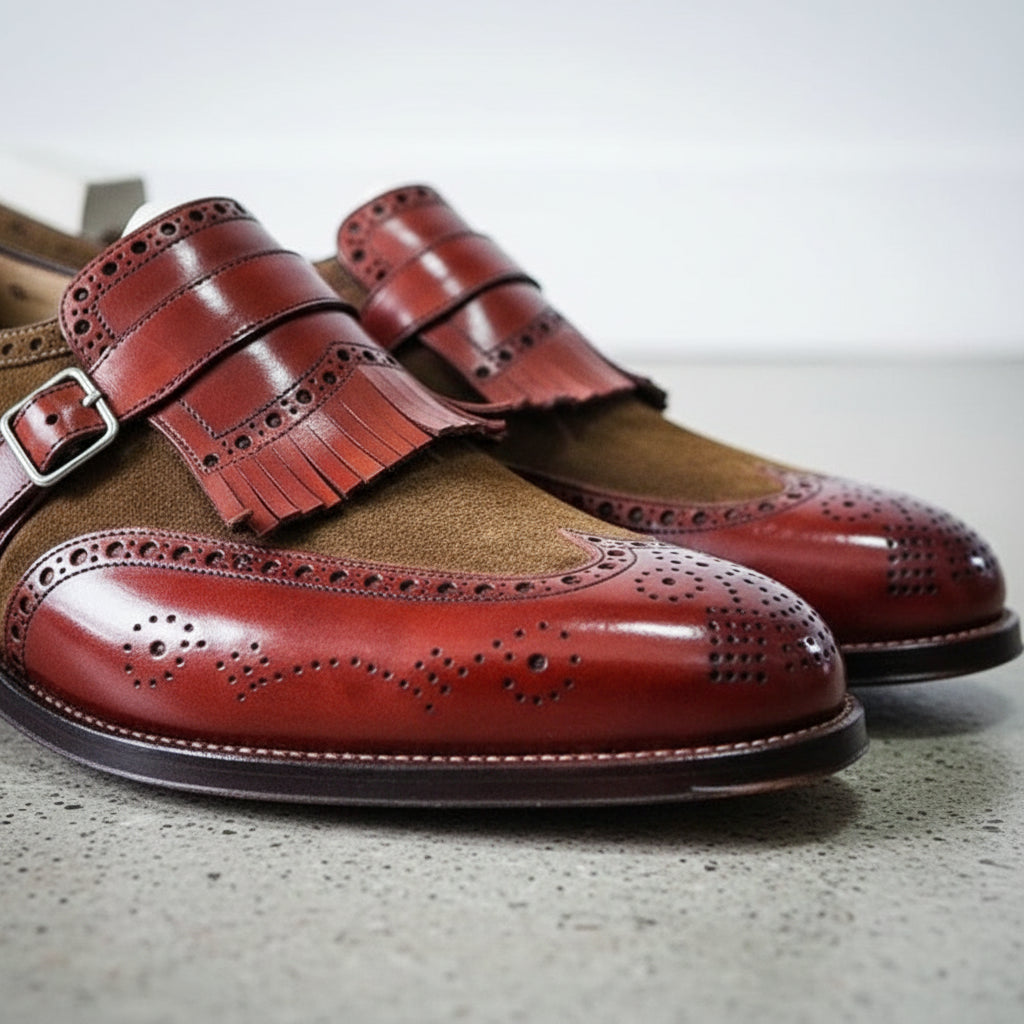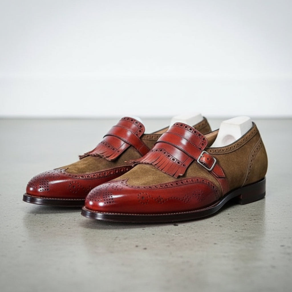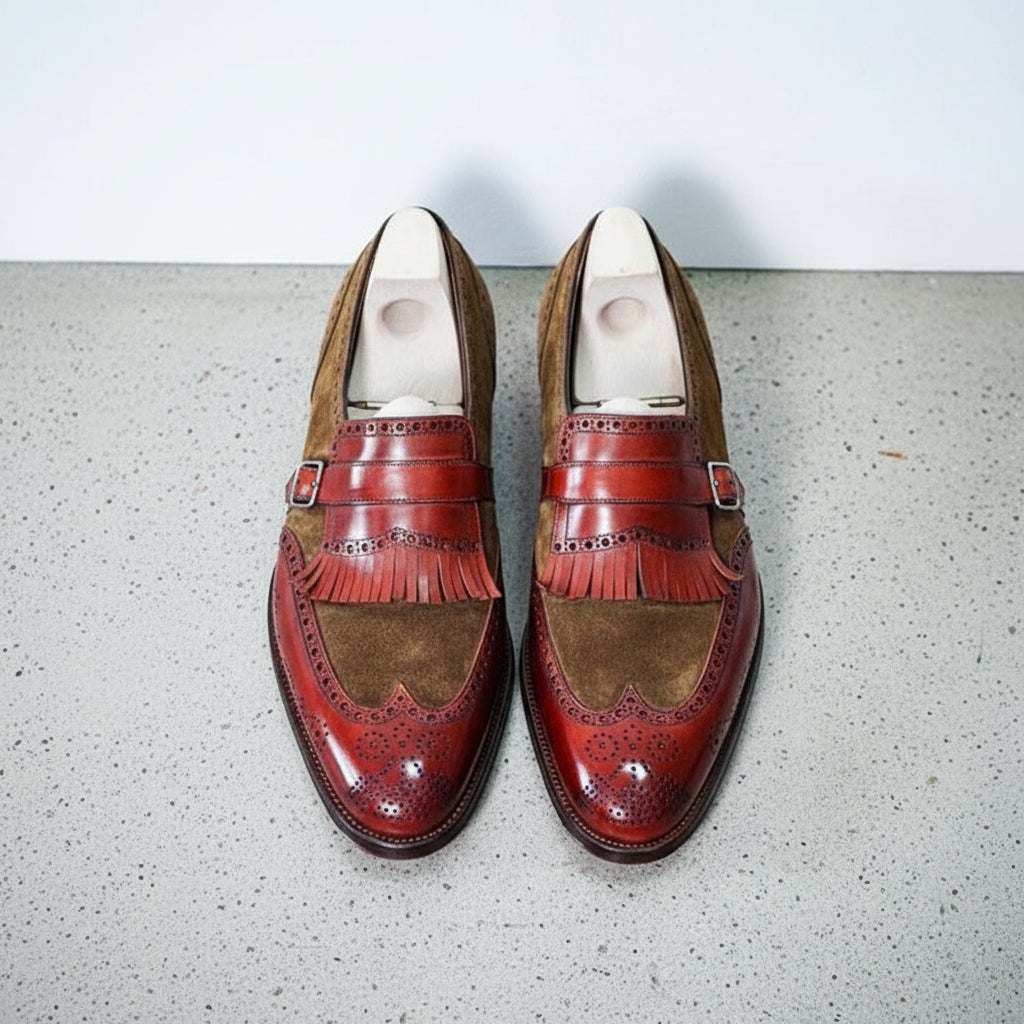 Handmade Mens two tone Fringe Shoes, Men wing tip dress shoes