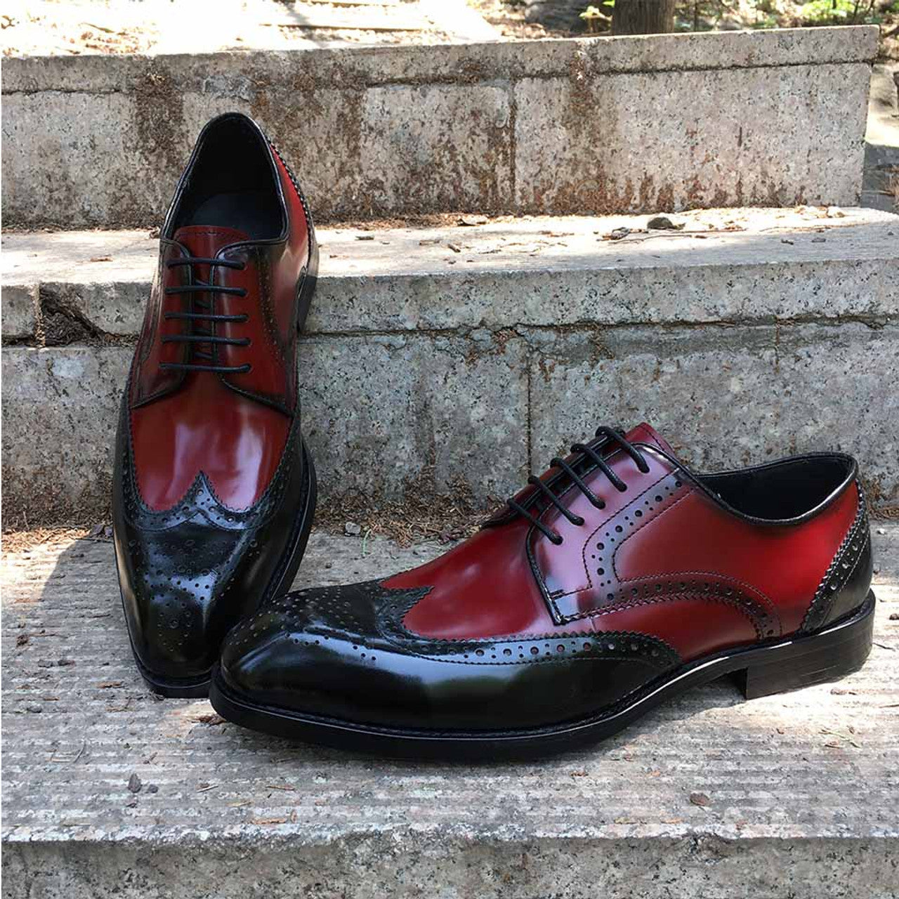 Men's Two Tone Wing Tip Brogue Dress Shoes
