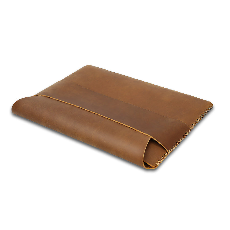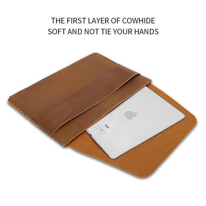 Handmade Slim Waterproof Flap Genuine Leather Unisex Laptop Sleeve
