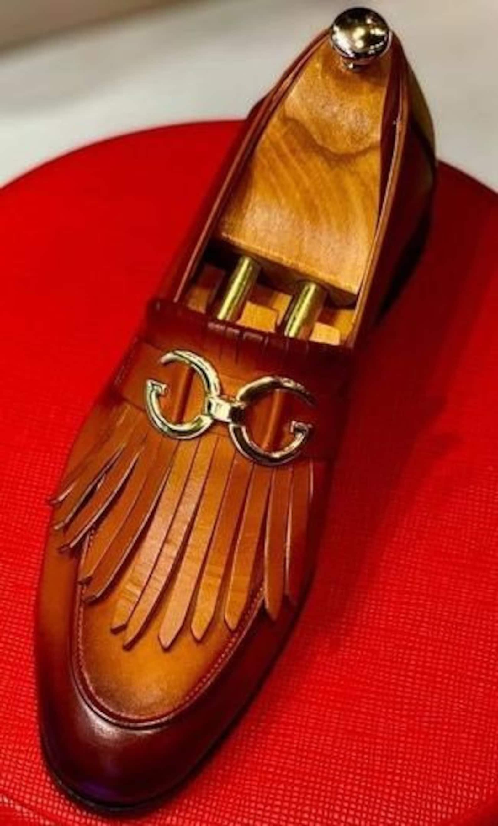 Handmade Tan Leather Fringe Buckle Shoes Moccasins, Mens Leather Shoes
