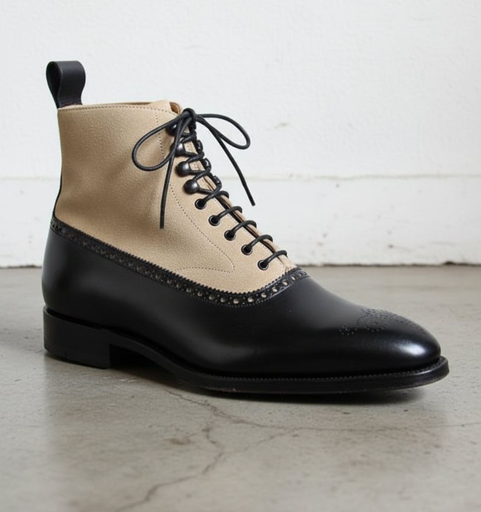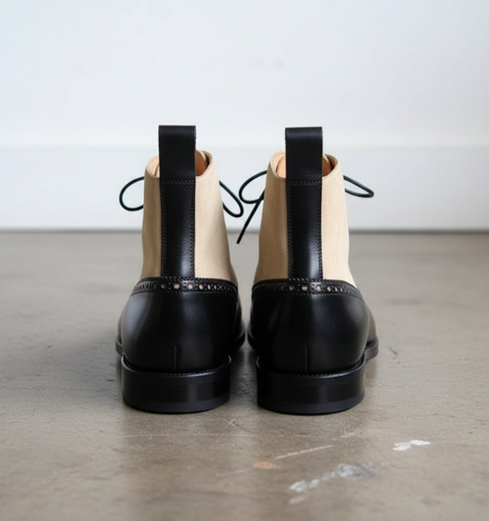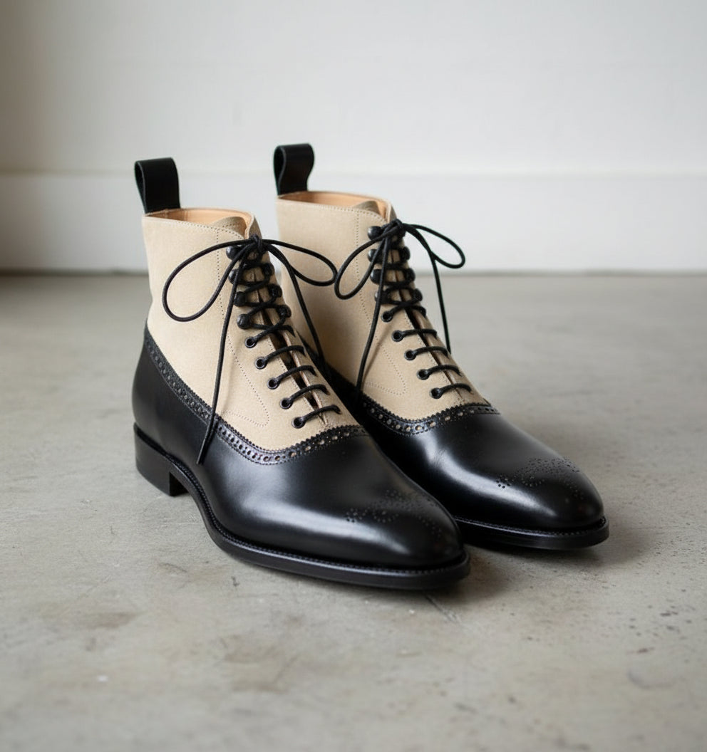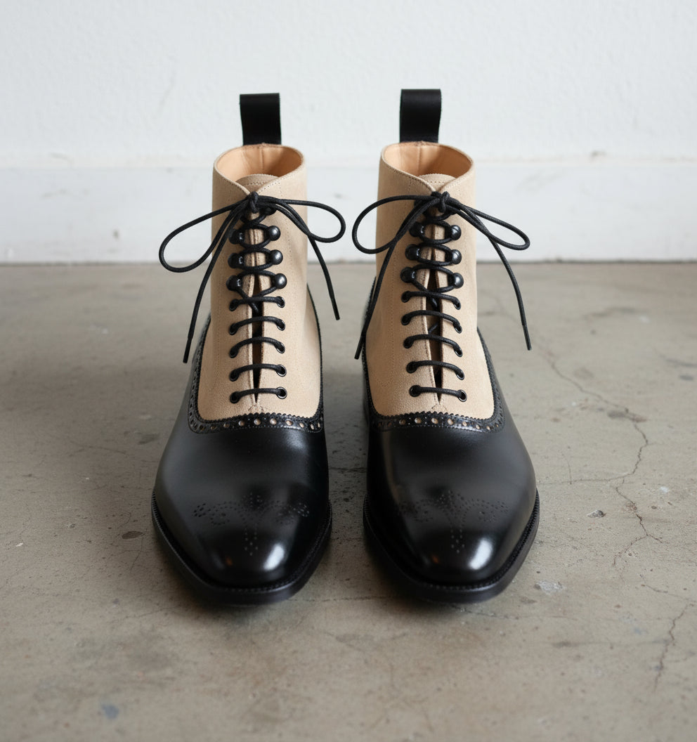 Handcrafted Two-Tone Lace-Up Ankle Boots for Men