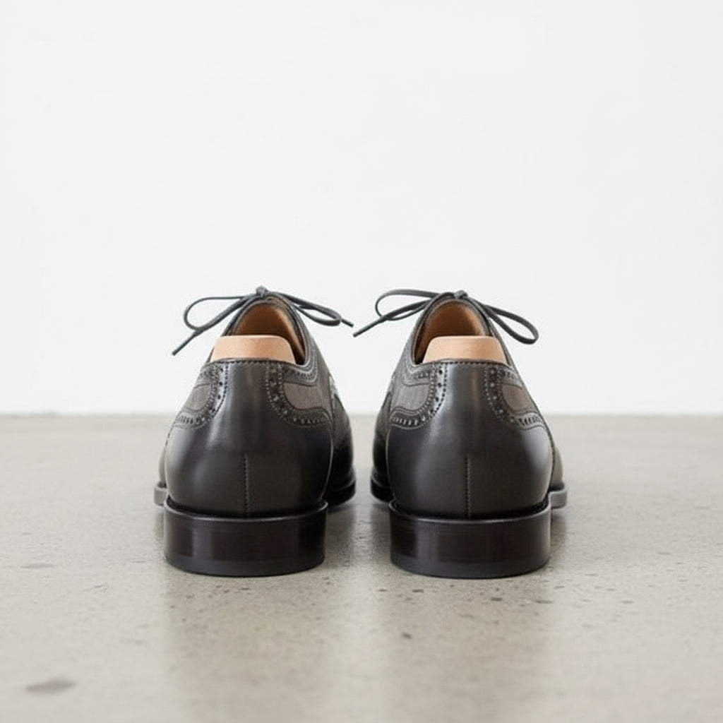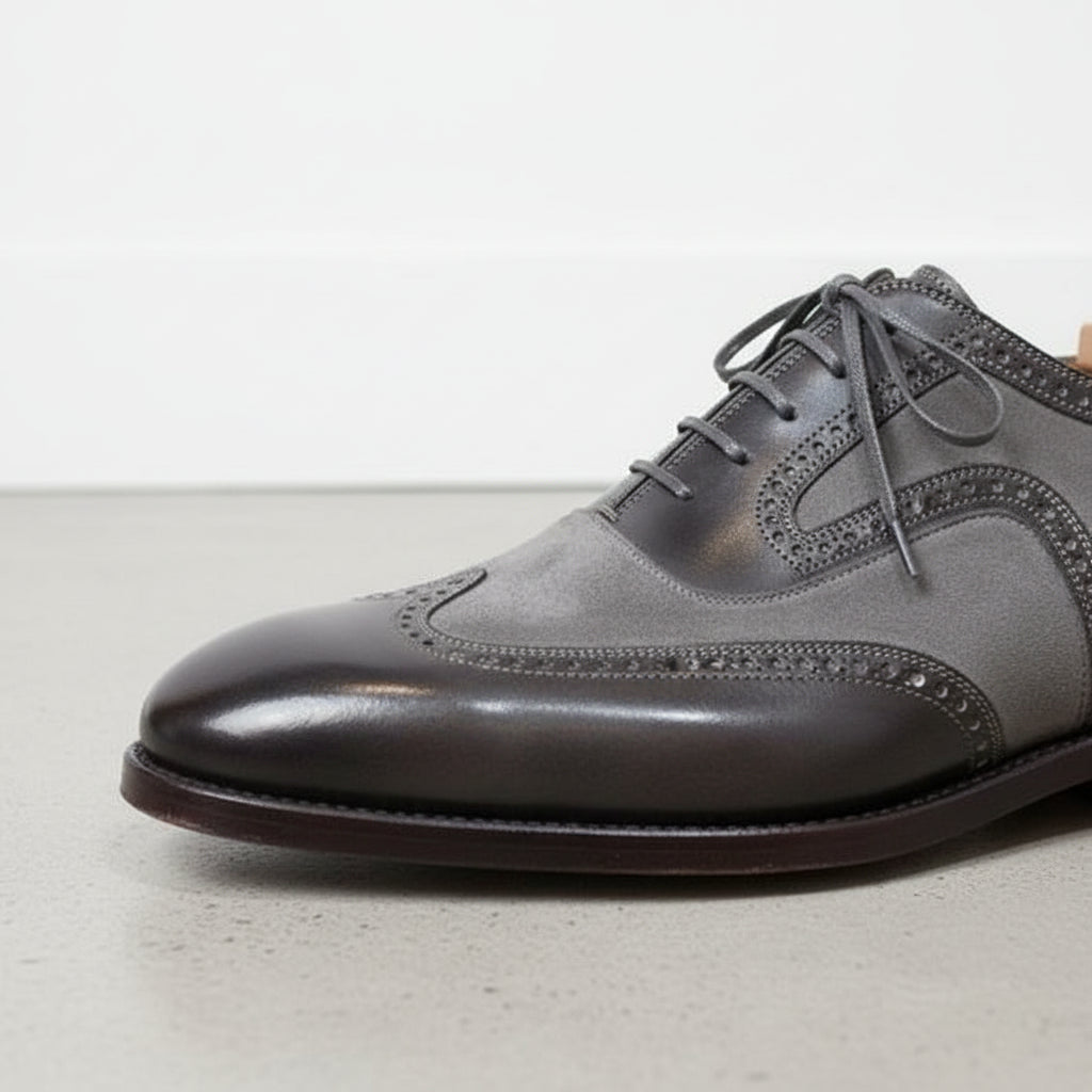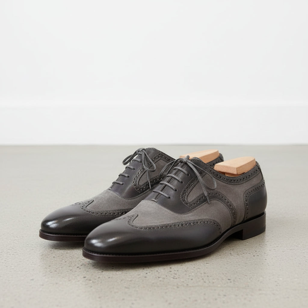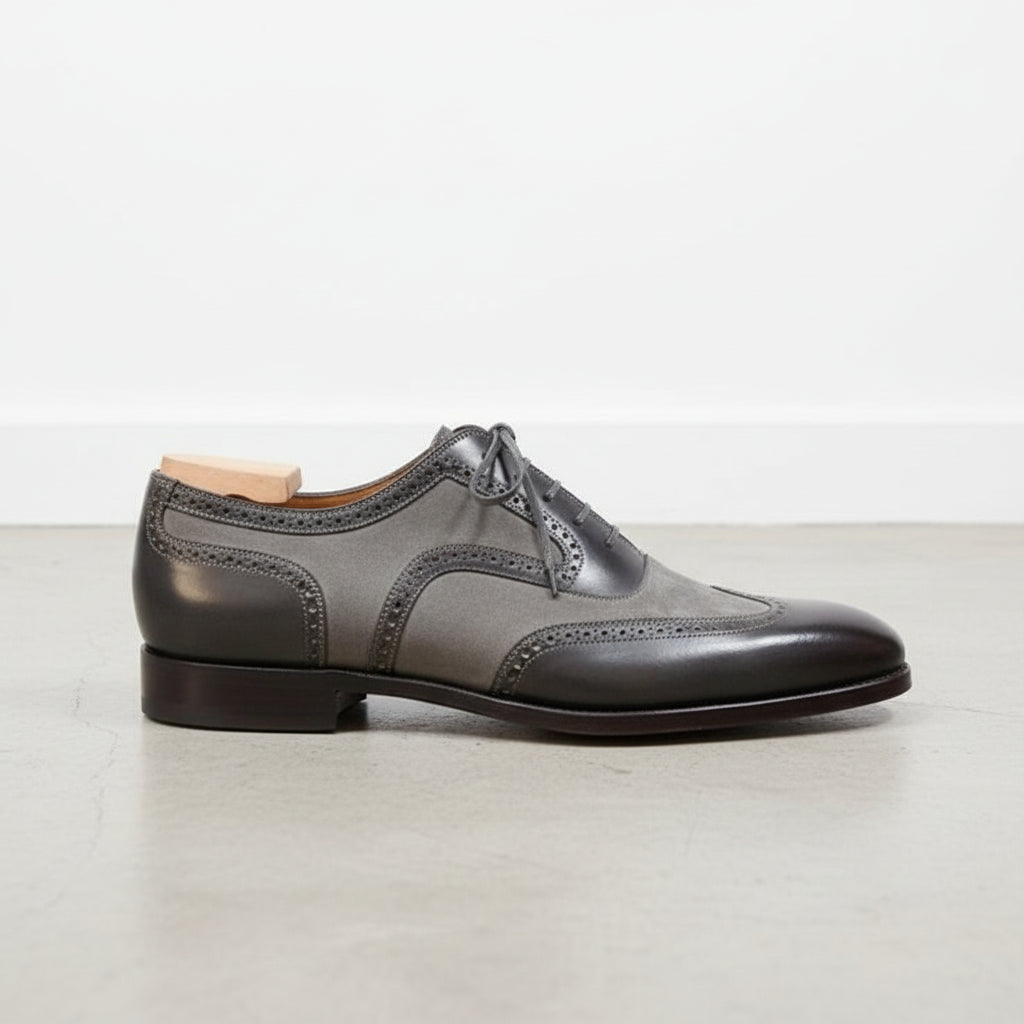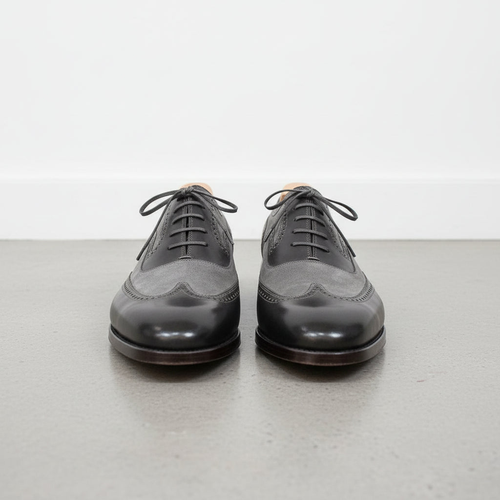 Handmade Two Tone Wingtip Formal Shoes, Men Gray and Black Two Tone Shoes,