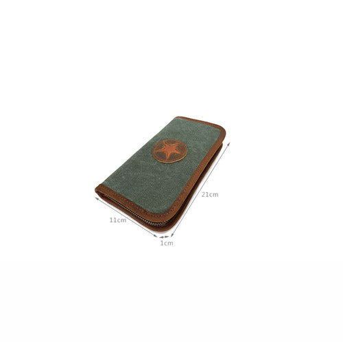 Handmade Canvas Zipper Closure Long Wallet for Men
