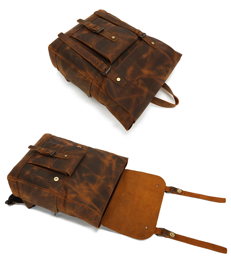 Handmade Full-Grain Leather Men’s Backpack with Zipper Closure