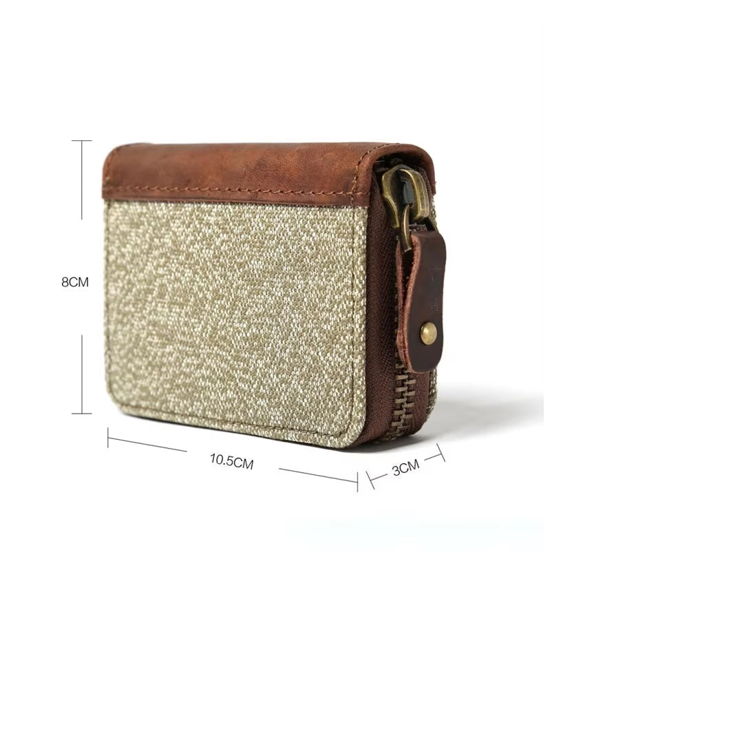 Handmade Zipper Canvas Leather Card Holder for Men
