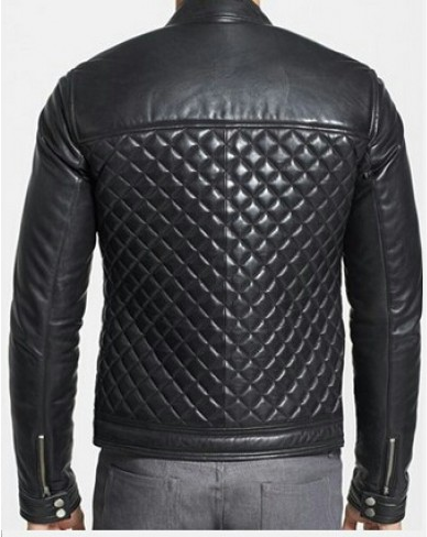 Men's Handmade Black Quilted Leather Biker Jacket with Stand-up Collar
