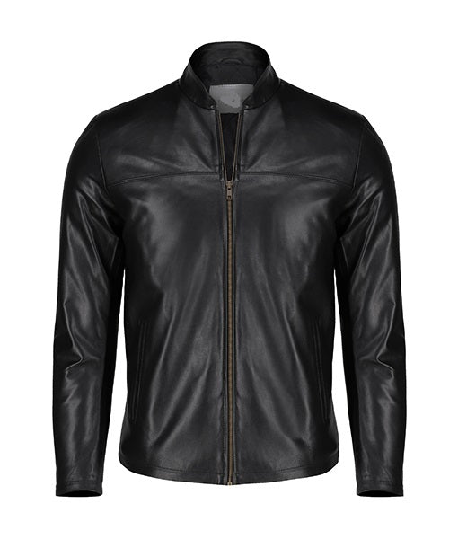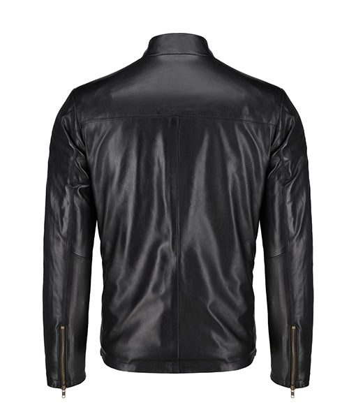 Handmade Men Black Sheep Leather Jacket, Men Motorcycle Jacket, Biker Jacket for Men
