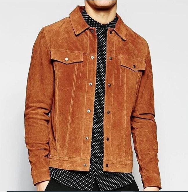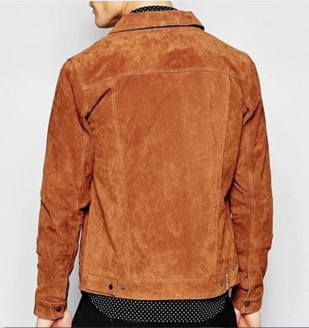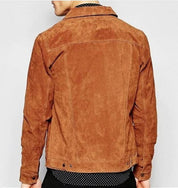 Men's Handmade Brown Suede Leather Trucker Jacket