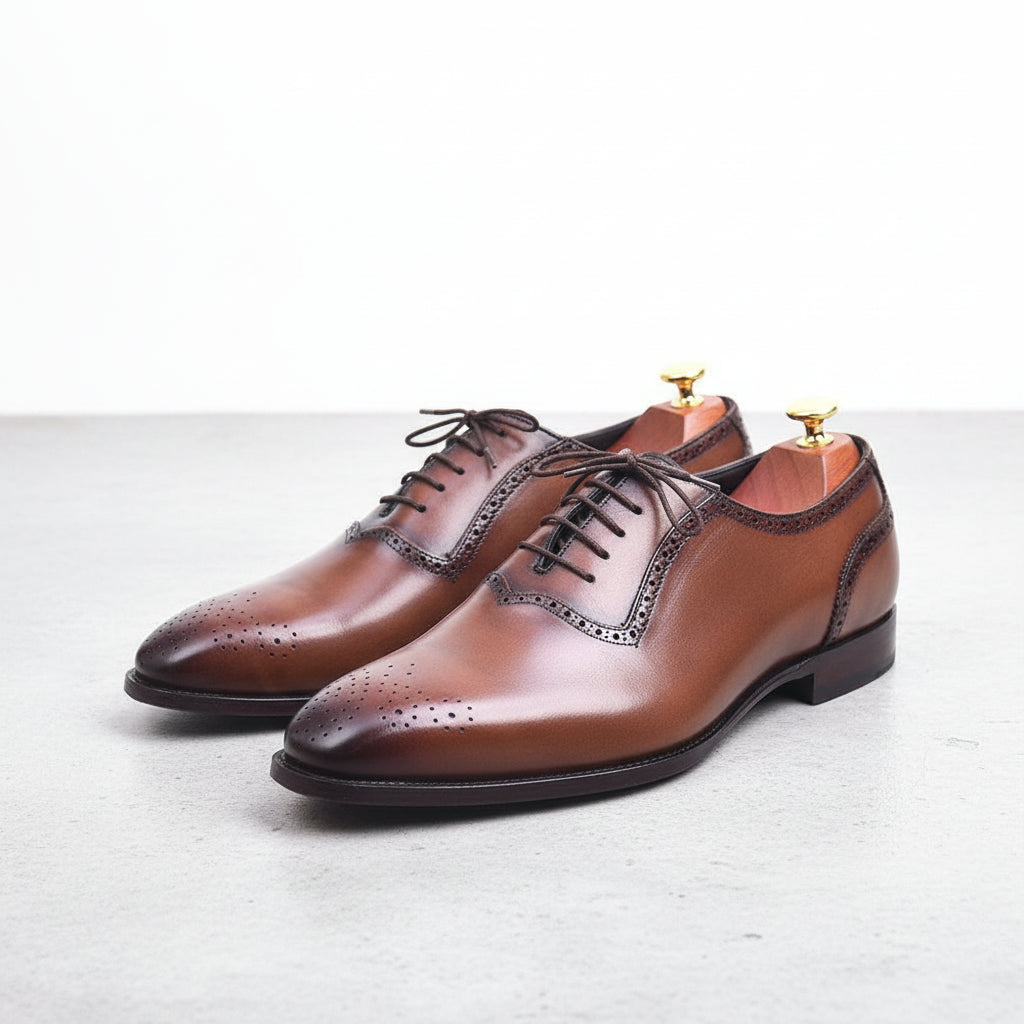 Men Handmade Brown Brogue Leather Formal Dress Shoes, Office Shoes