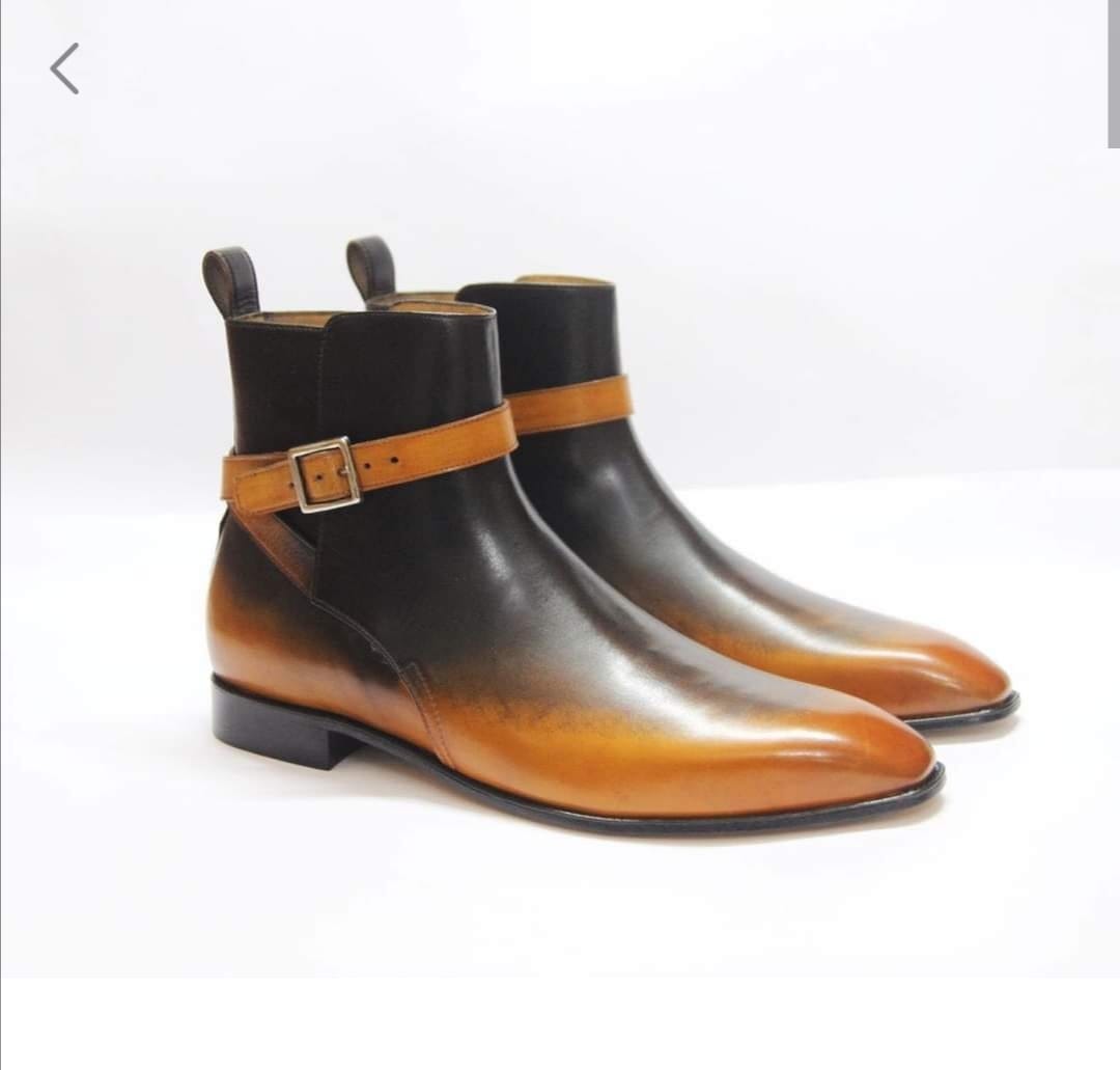 Men Handmade Shaded Tan Black Leather Jodhpurs, Men Office Ankle Boots