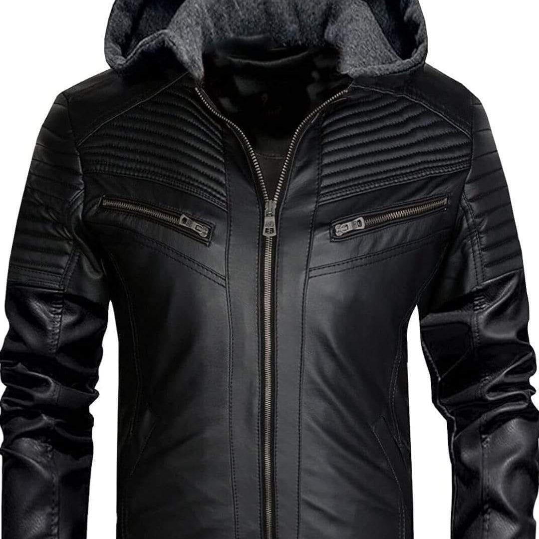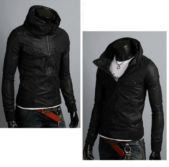 Handmade Men Korean Style Hooded Leather Jacket, Slim Fit Leather Jacket