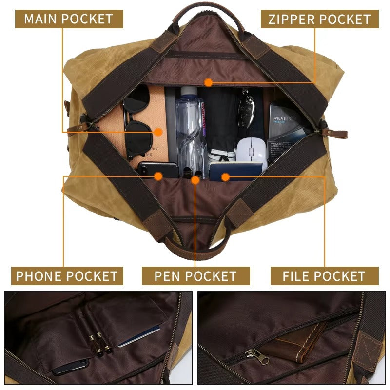 Men’s Canvas Weekender Duffel Bag, Large Capacity Travel Tote Bag