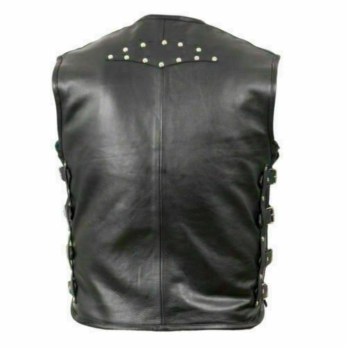 Handmade Punk Men's Genuine Leather Heavy Buckled Motorcycle Biker Vest Waistcoat