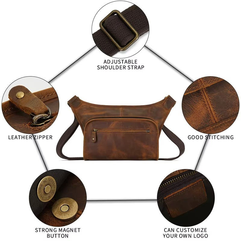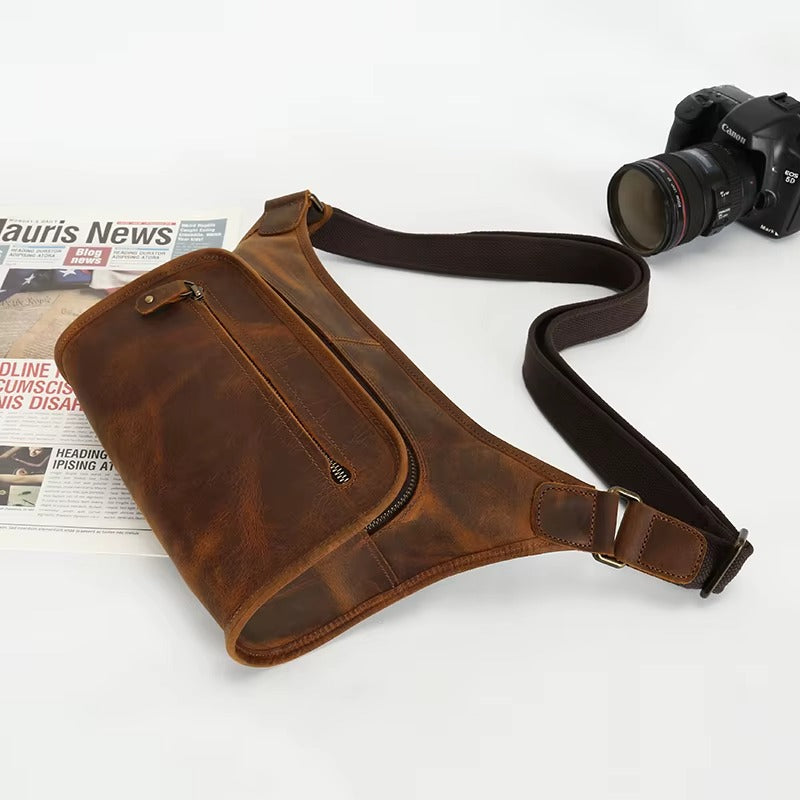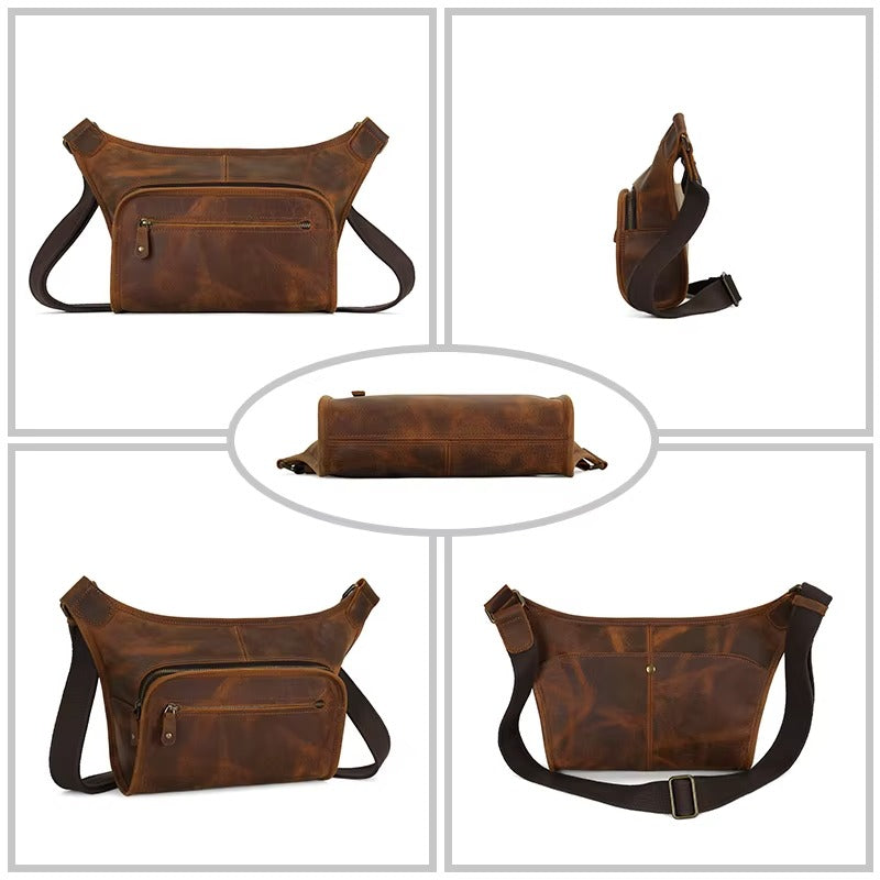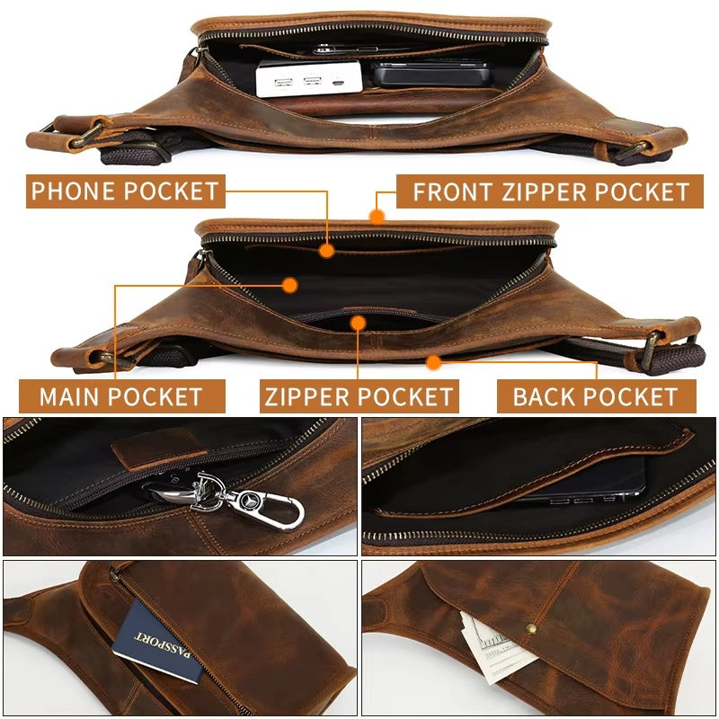 Men’s Premium Leather Crossbody Sling Bag, Handmade Leather Messenger Bag