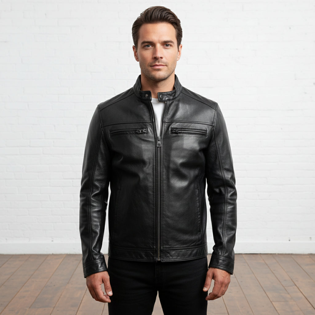 Men’s Retro Black Leather Rider Jacket - Modern Casual Jacket