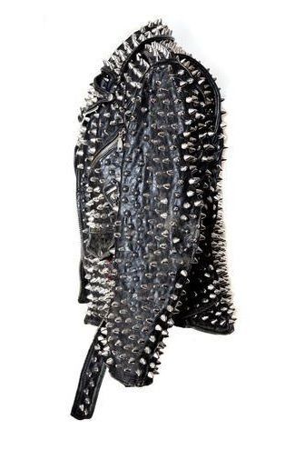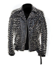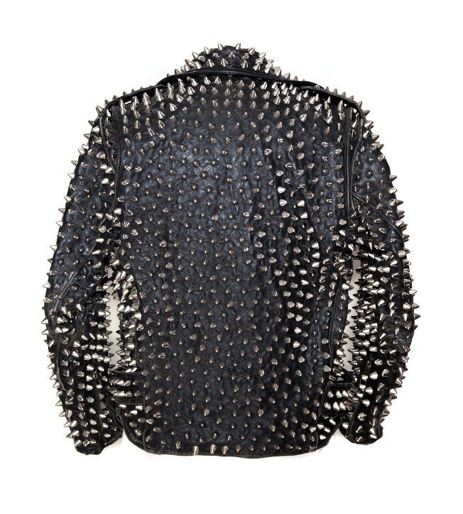 Handmade Punk Men Silver Studded Custom Patches Long Spike Brando Belted Jacket