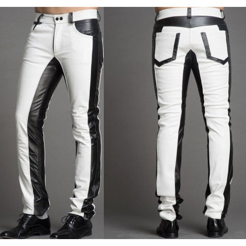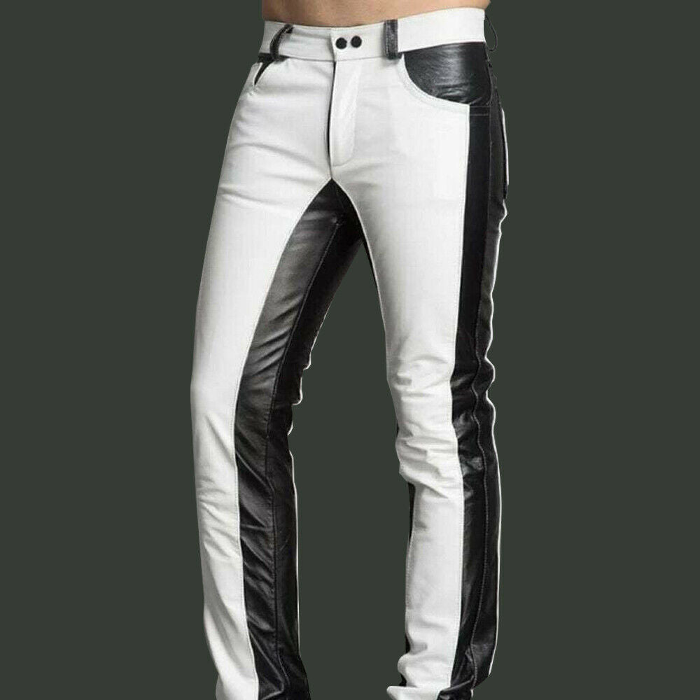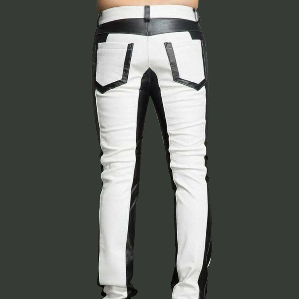Punk Men Two Tone Biker Leather Trouser, Men Style Motorcycle Leather Jeans