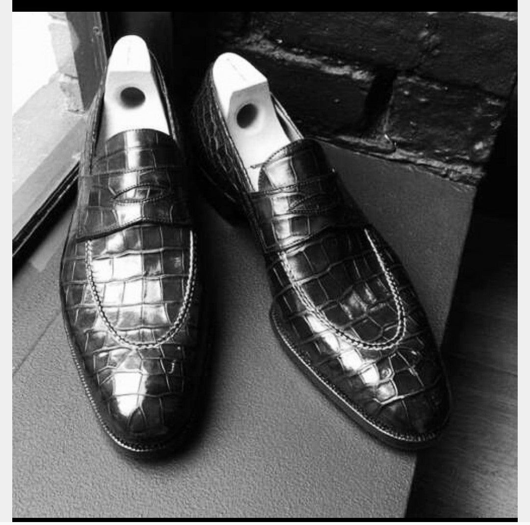 Mens Alligators Shoes, Men Crocodile Patterned Dress Shoes Moccasins
