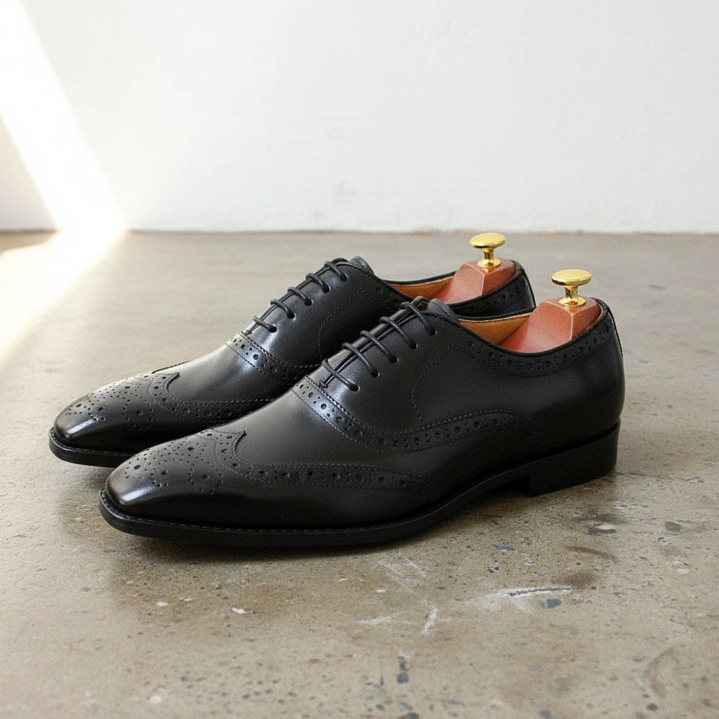 Handmade Mens Back Leather Brogue Dress Shoes, Men Tuxedo Shoes