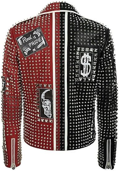 Men's Handmade Two-tone Leather Punk Rock Motorcycle Jacket