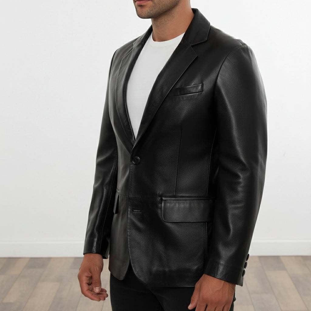 Men's Slim Fit Genuine Leather Blazer, Tailored Black Leather Jacket