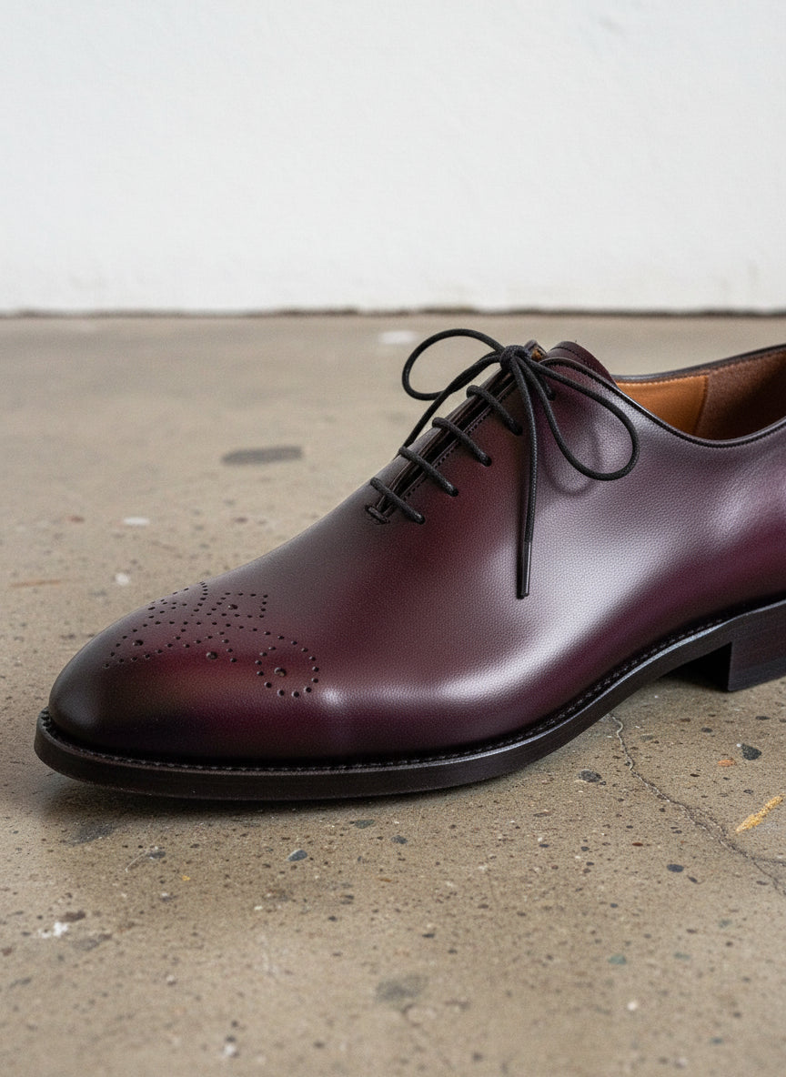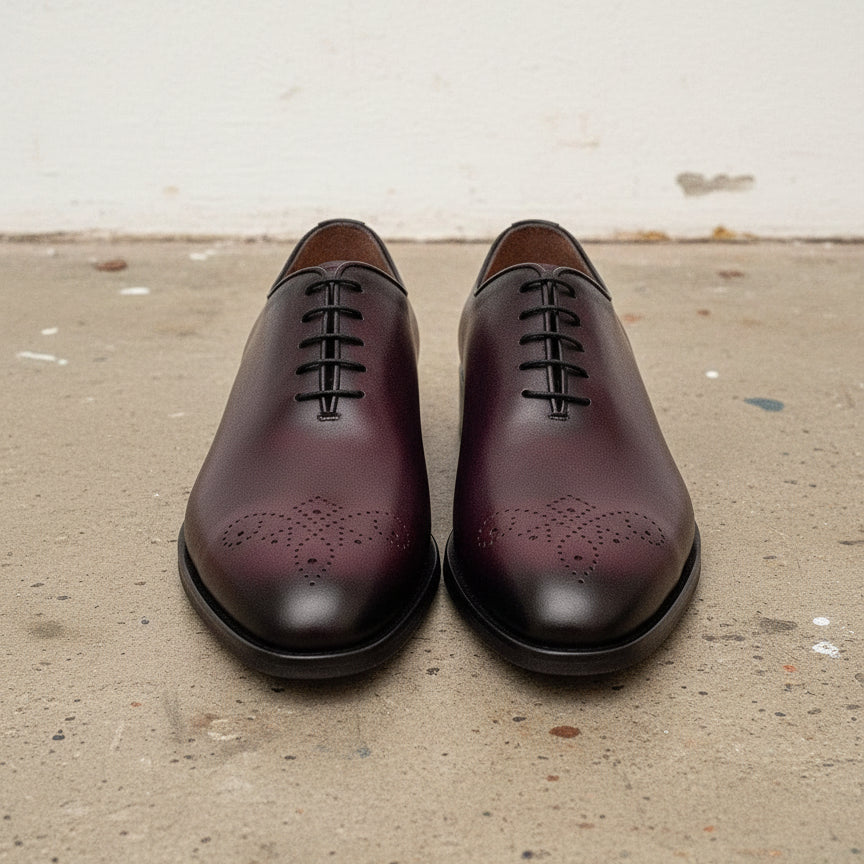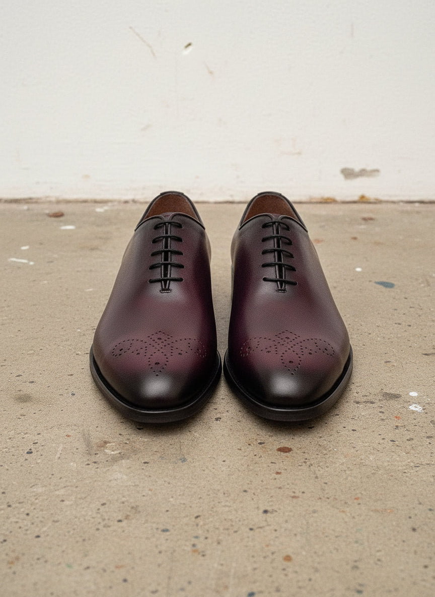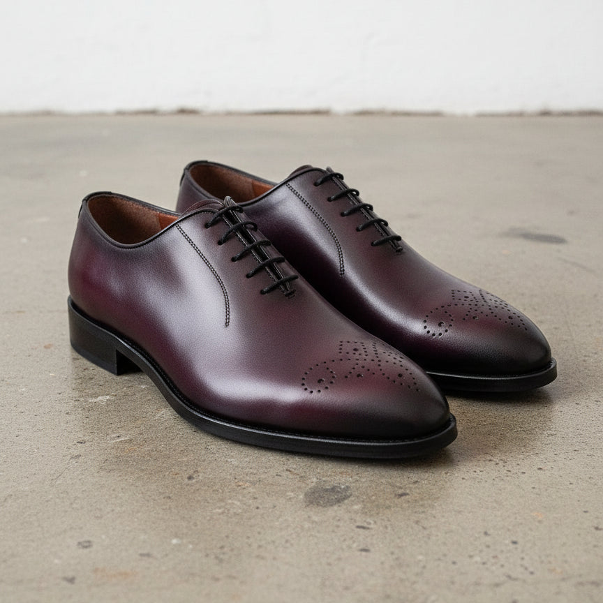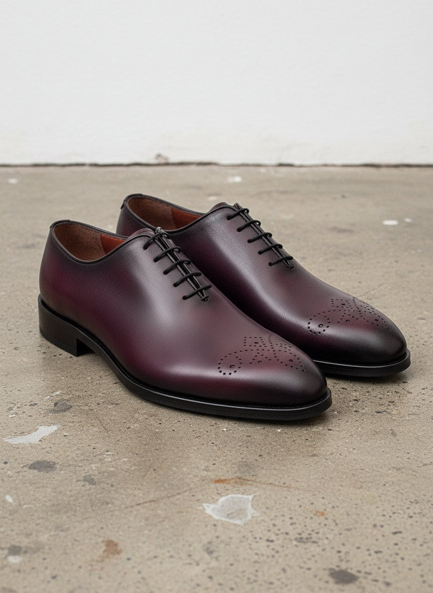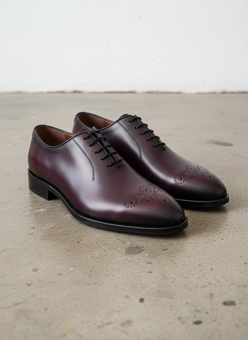 Handcrafted Burgundy Whole Cut Oxford Leather Dress Shoes