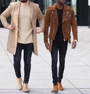 We use premium suede with a soft brushed finish, not stiff, not synthetic. Its natural texture gives every jacket a calm, refined look.