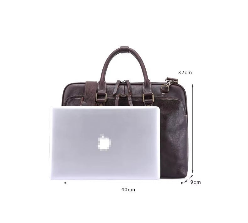 Premium Vintage Leather Laptop Briefcase for Men – Waterproof, Zipper Close