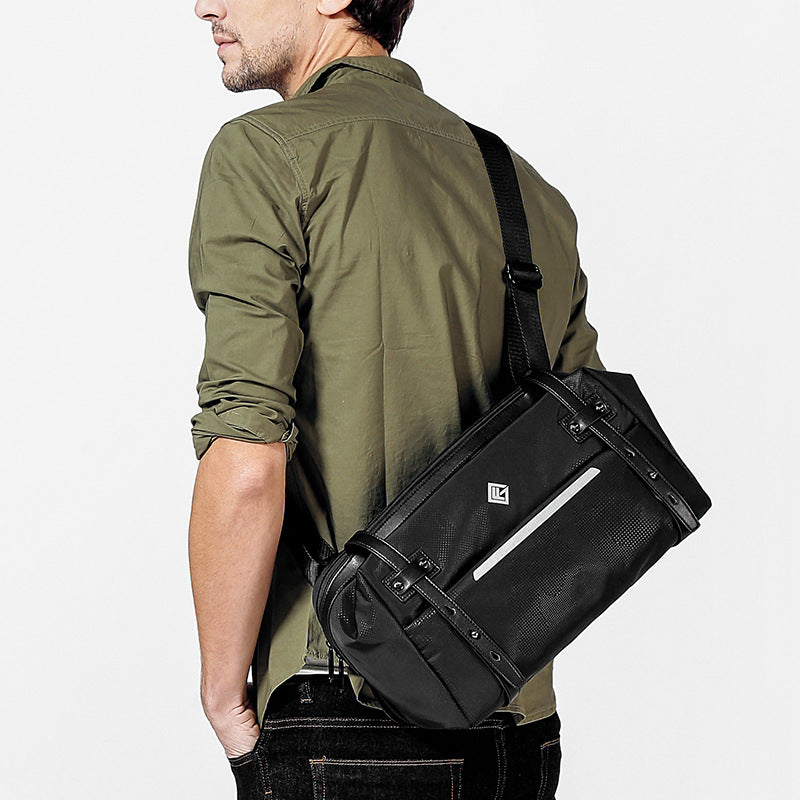 Sleek Messenger Canvas Bag with Modern Design and Reflective Detailing