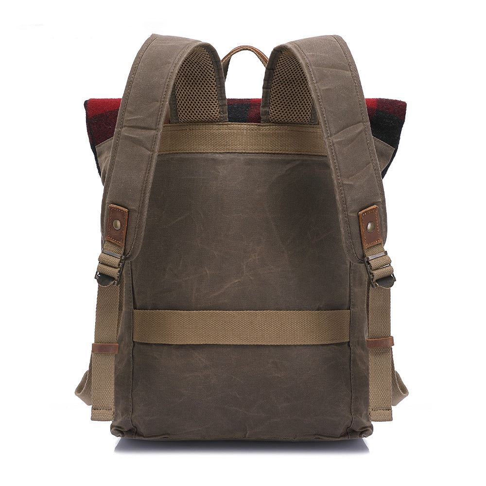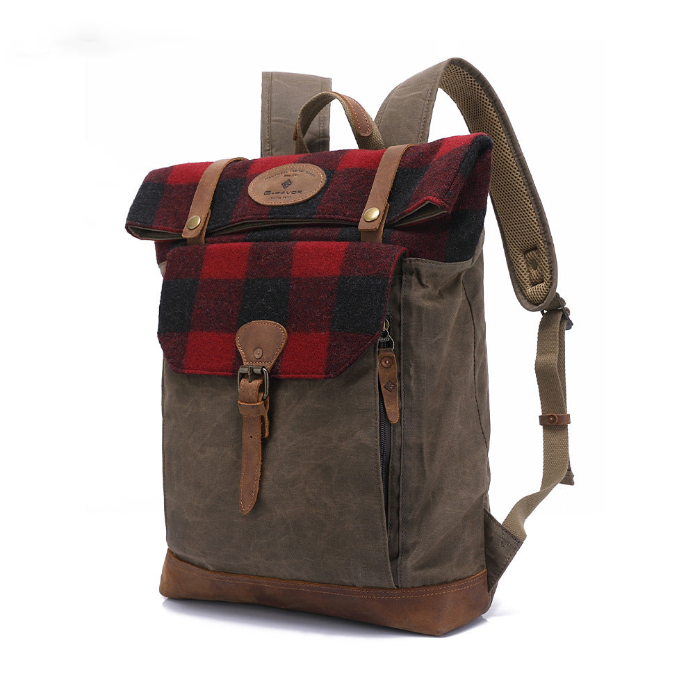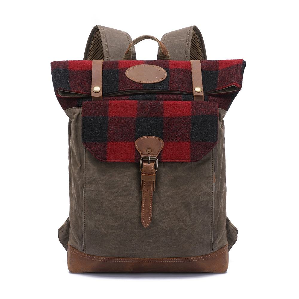 Waxed Canvas College Daypack & Business Backpack With Bufallo Plaid Design