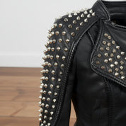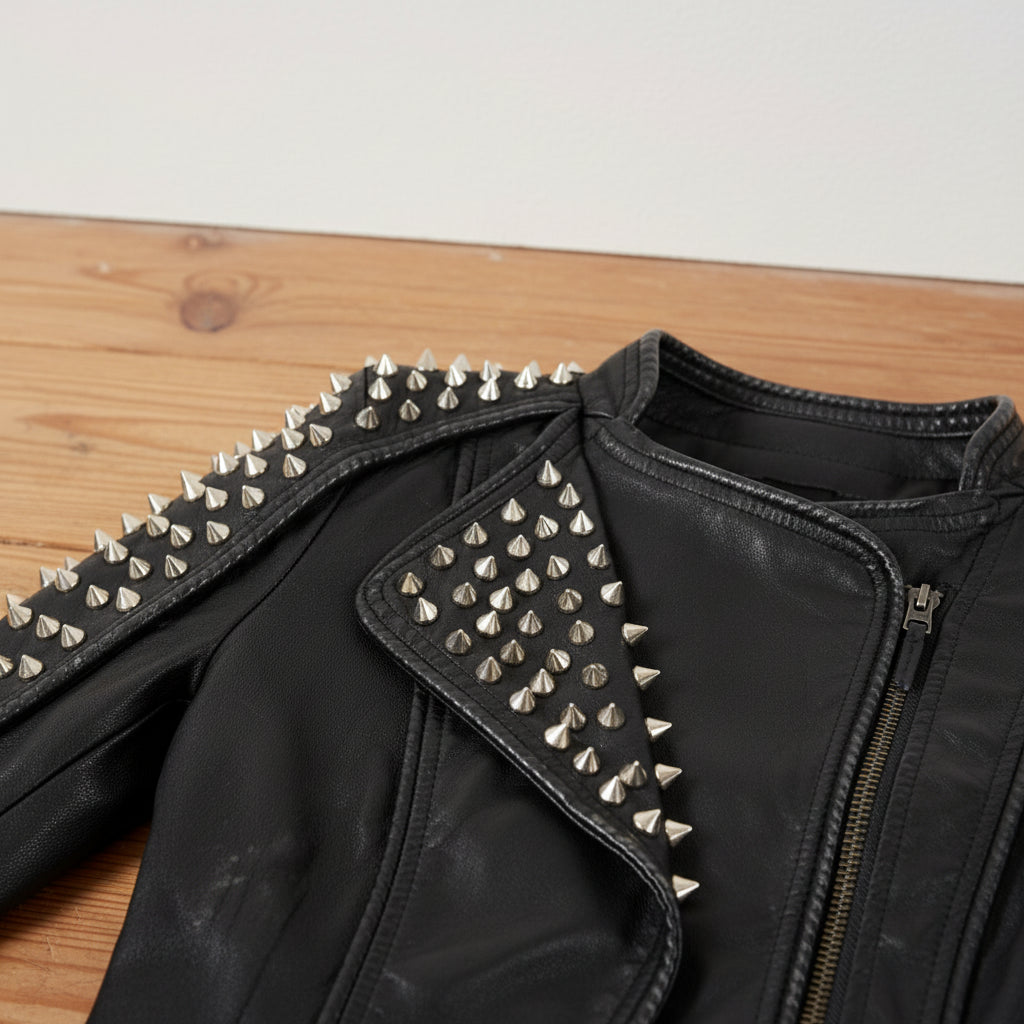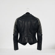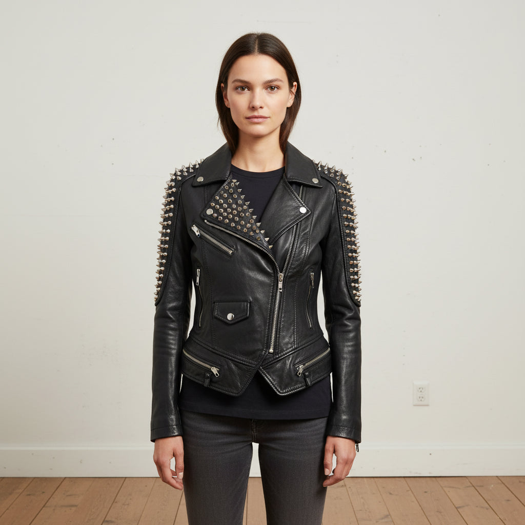 Handmade Gothic Women Black Leather Fashion Studded Jacket, Rock Fashion Jacket