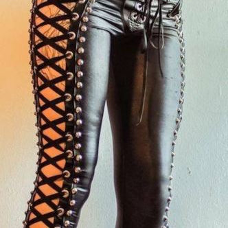 Gothic Women Real Leather Snug Fit stylish Laces Women Pant